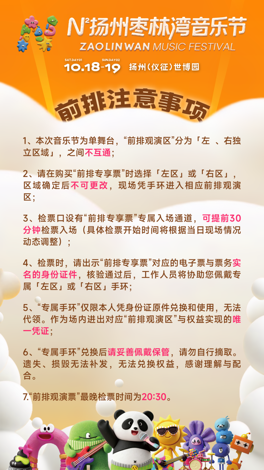 4、“专属手环”仅限本人凭身份证原件兑换和使用,无法代领。作为场内进出对应“前排观演区”与权益实现的唯一凭证;