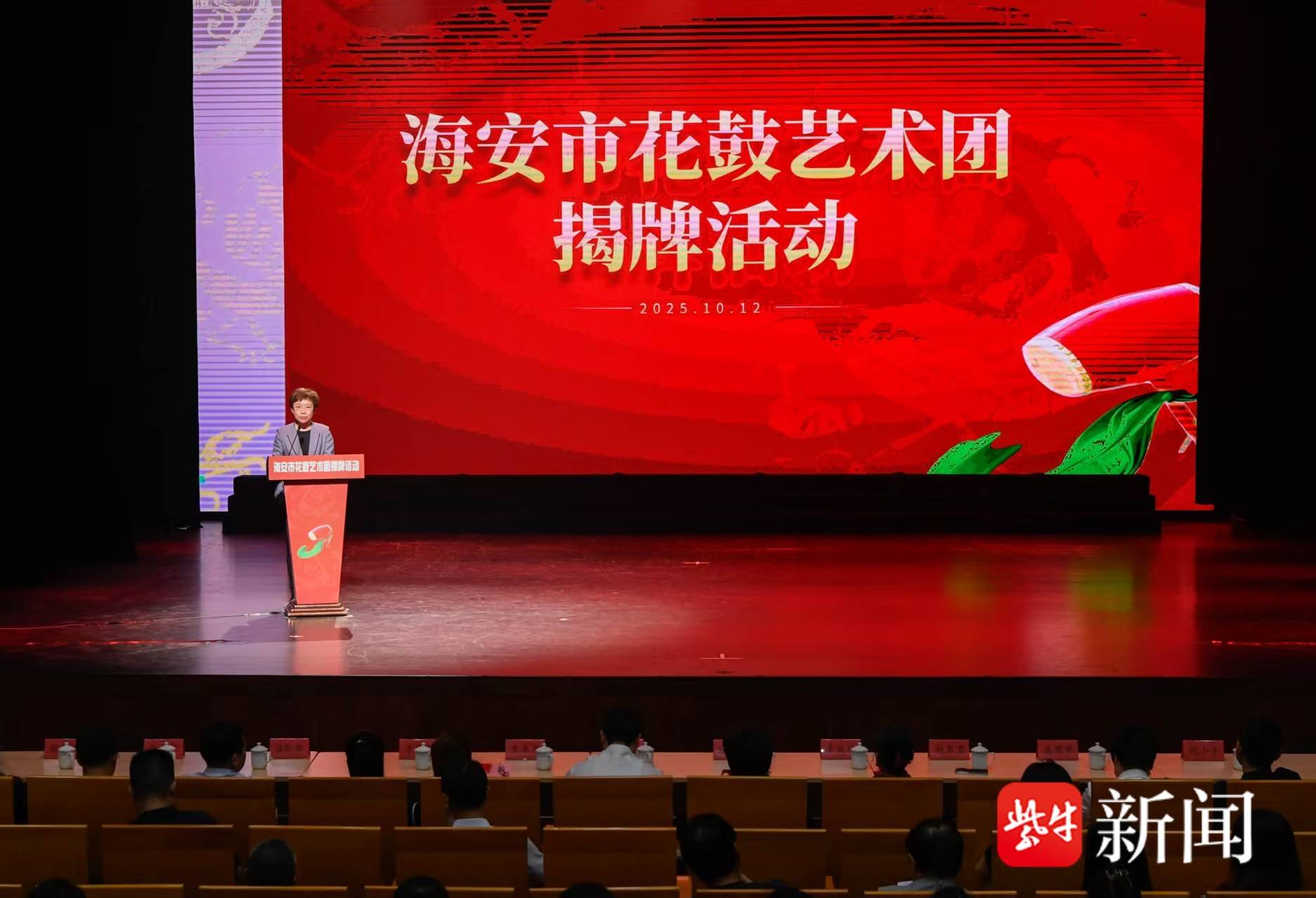 扬子晚报网讯(记者 朱亚运 吴佳笑 通讯员 郭雷 视频 吴佳笑)金秋的海安,满是文化丰收的味道。作为江海平原上独具特色的艺术形式,海安花鼓,蕴藏着深厚的民间智慧与审美价值。10月12日,海安市花鼓艺术团揭牌活动举行,现场,南通市委常委、宣传部部长陈冬梅和海安市委书记谭真一起掀开幕布,“海安市花鼓艺术团”正式揭牌。
