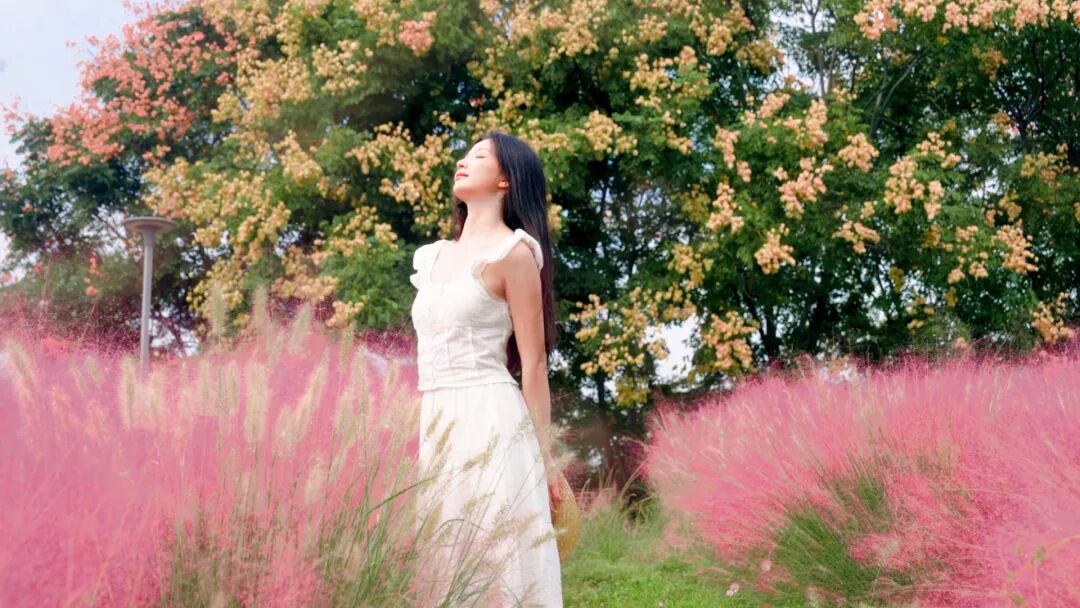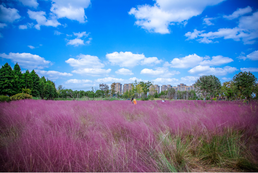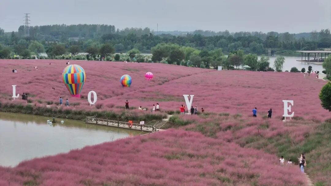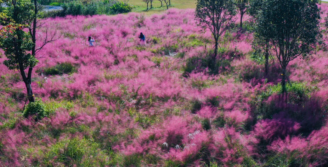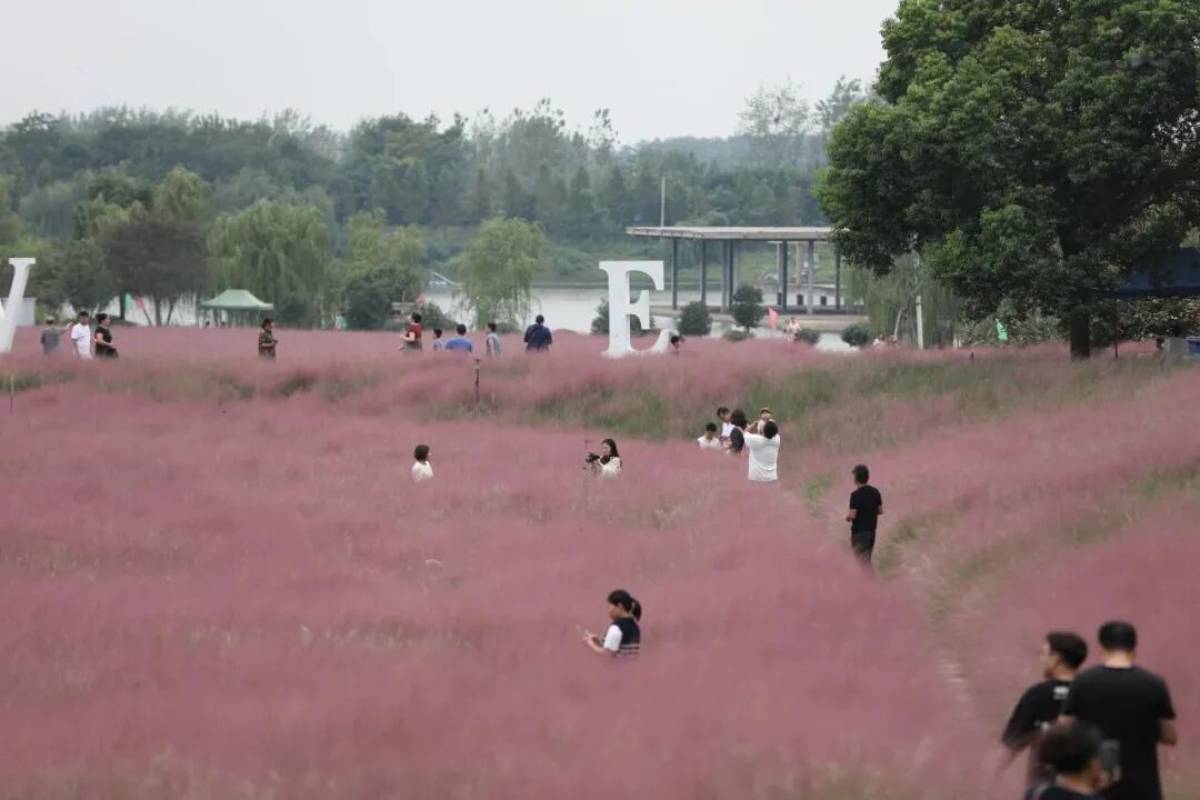 “最近来打卡的游客特别多,粉黛乱子草单看一株并不起眼,但连成一片时,就成了云雾般壮观的花海。”北湖湿地公园相关负责人笑着介绍,“这片粉色天地亦梦亦幻,连空气里都飘着浪漫的味道。”