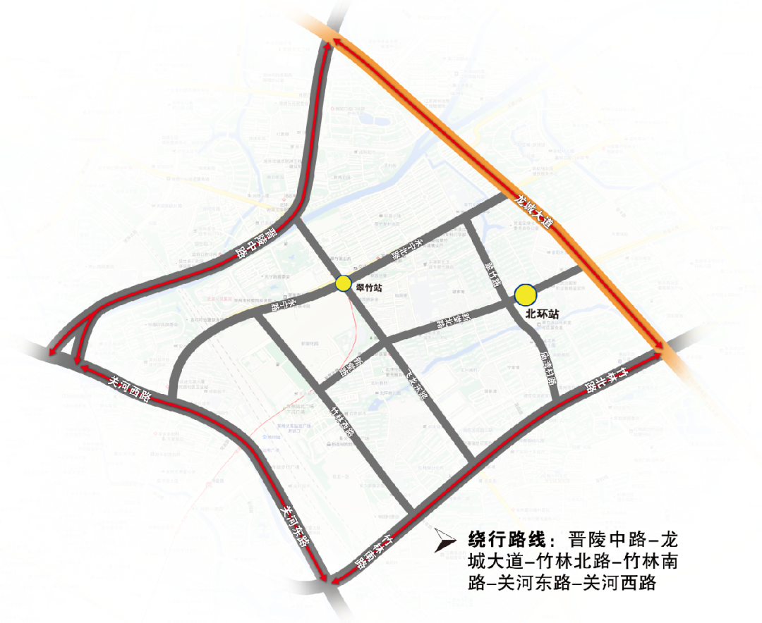 建议有条件的朋友尽量避开施工路段,可选择龙城大道、竹林路、关河路等道路绕行。确需经过施工路段的车辆,请严格按照交通信号及现场指挥有序通行。