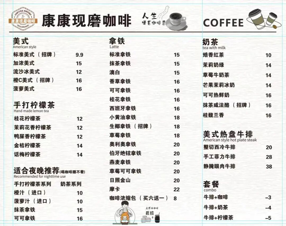 还有奶茶、手打柠檬茶、美式热盘牛排等