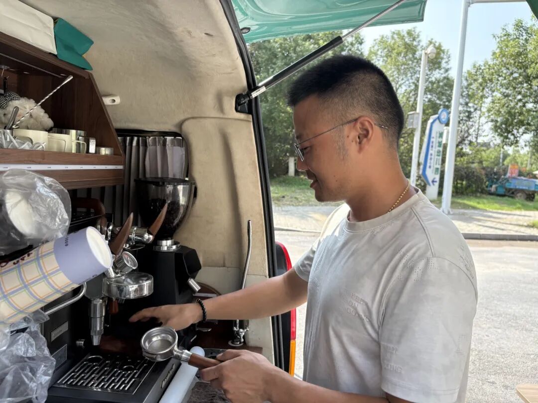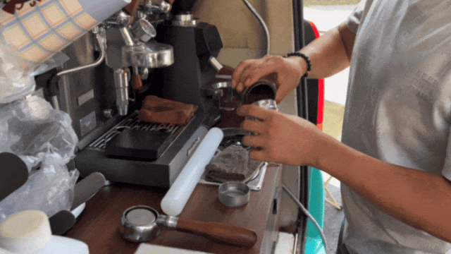 咖啡机、磨豆器、纸杯等挤得满满当当