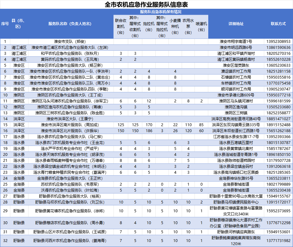 分秒必争抢“三秋”!淮安市服务保障点位公布