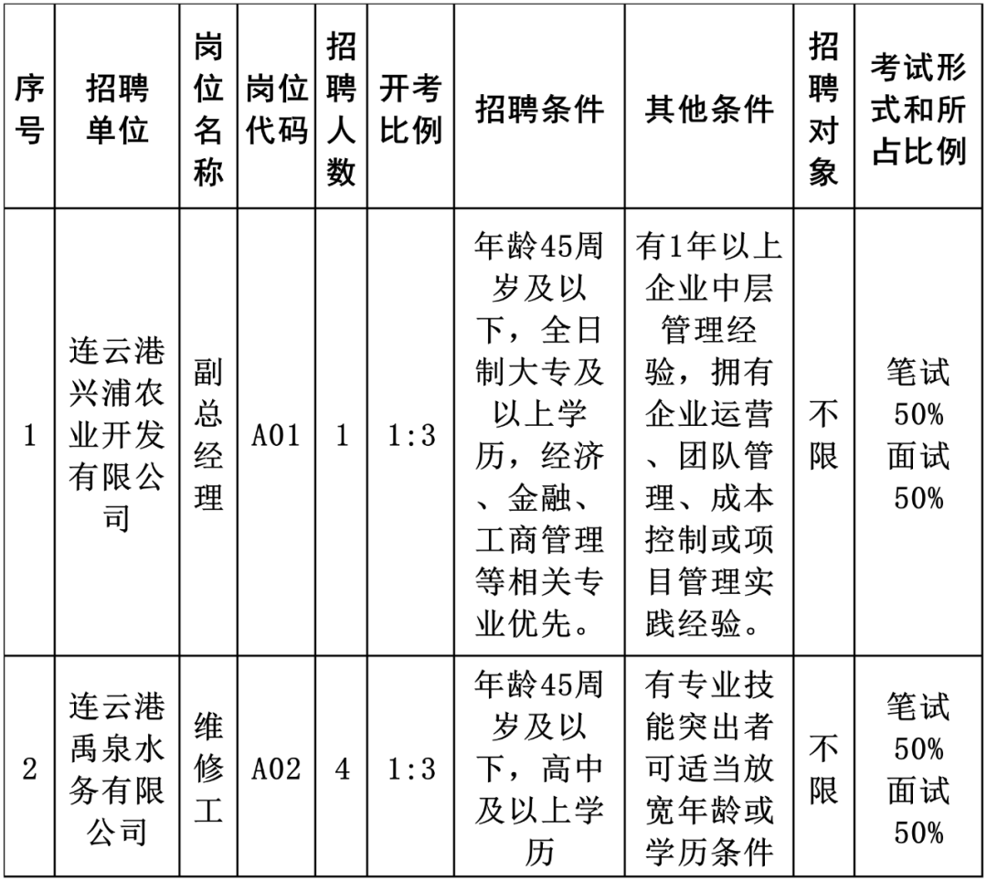 海州区板浦镇国有企业2025年公开招聘工作人员公告
