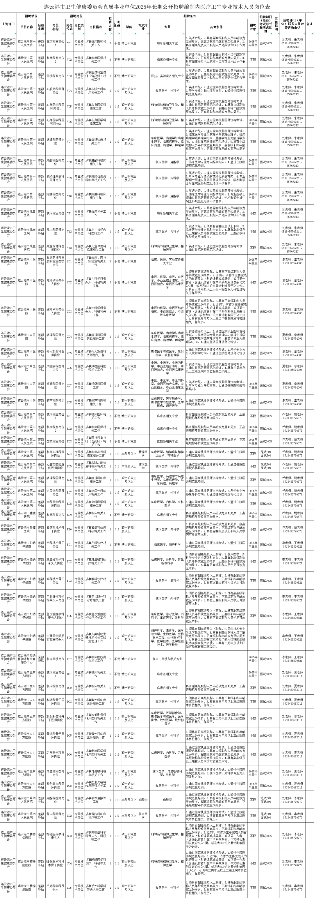 2025年连云港市卫健委直属事业单位长期公开招聘编制内医疗卫生专业技术人员公告