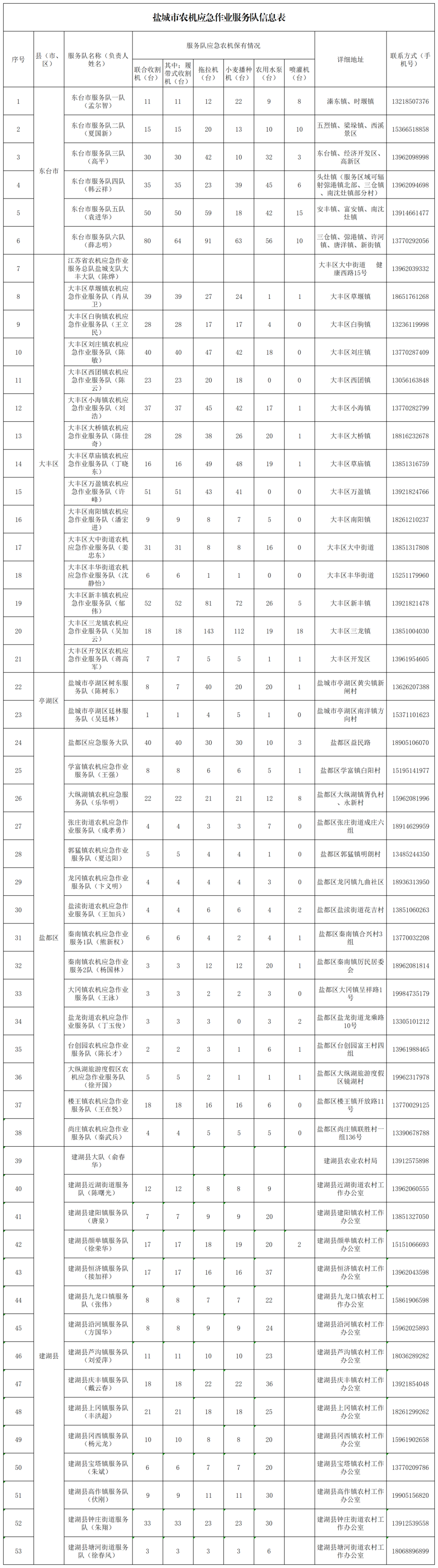 《盐城市“三秋”机械化生产应急烘干中心(点)信息表》