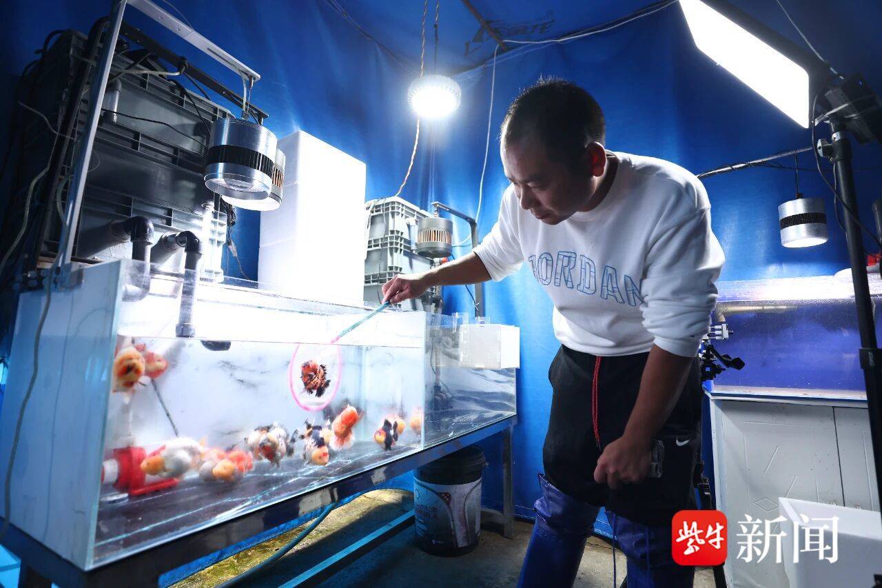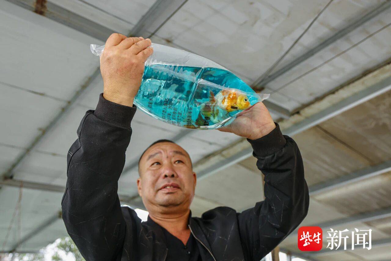 不远处,徐州杨子观赏鱼有限公司的渔场内,负责人杨建华正和妻子曹爱华忙着打包发货。他熟练地向装有蓝色液体的保鲜袋注入氧气:“这水里加了亚甲基蓝,能杀菌防病,降低运输中的死亡率。”