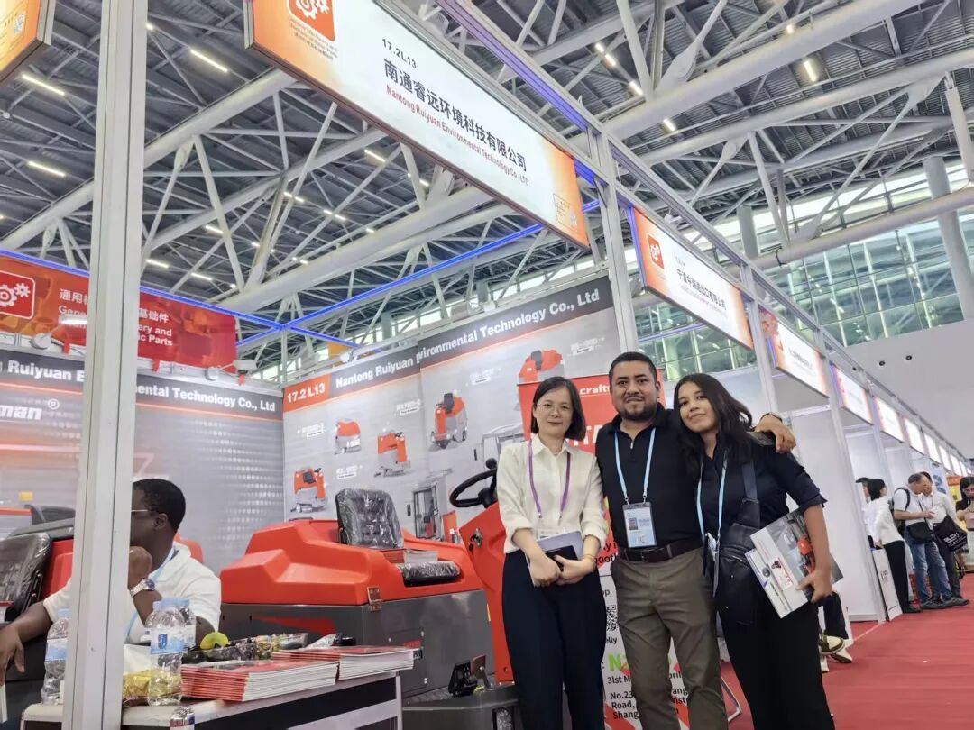 在伟越积极推销的同时,其展位不远处的南通睿远环境科技有限公司的销售团队也在奋力地售卖着自家产品。睿远环境科技是今年第一次参加广交会的新生企业,此次参会也是他们线下推介产品走出的第一步。“企业主要专注于工、商业地面清洁设备的研发、生产和销售,这次选择的展品是RS1400款工业扫地机和RX900款工业洗地机。我们将以此次参展为契机,深化合作,提升品质与服务,为全球地面清洁事业贡献更多力量。”企业负责人沙正鹏告诉记者,他深知想在众多的参展企业中脱颖而出并非易事,所以十分珍惜这次的参展机会。