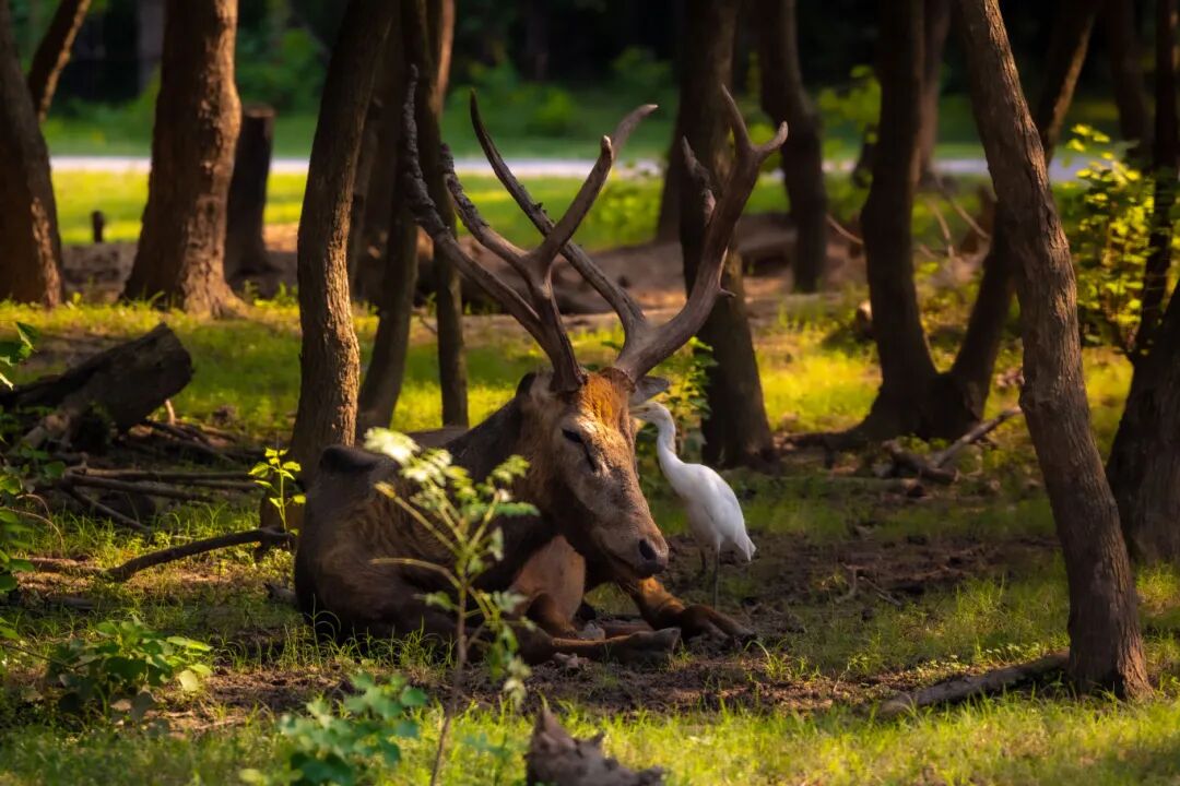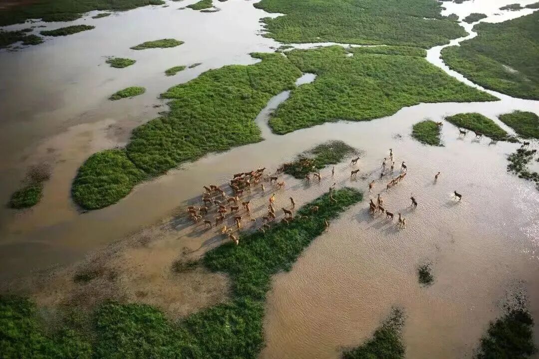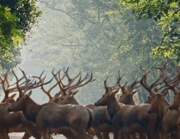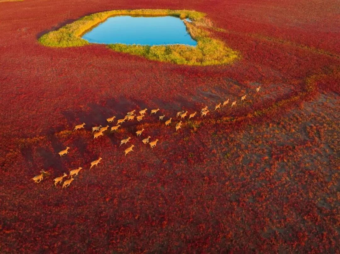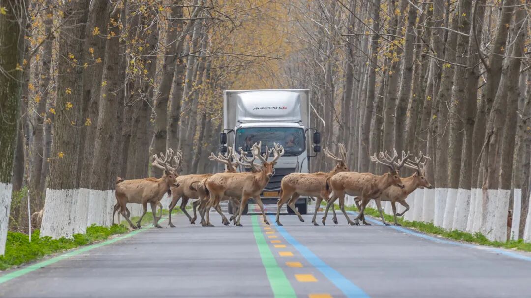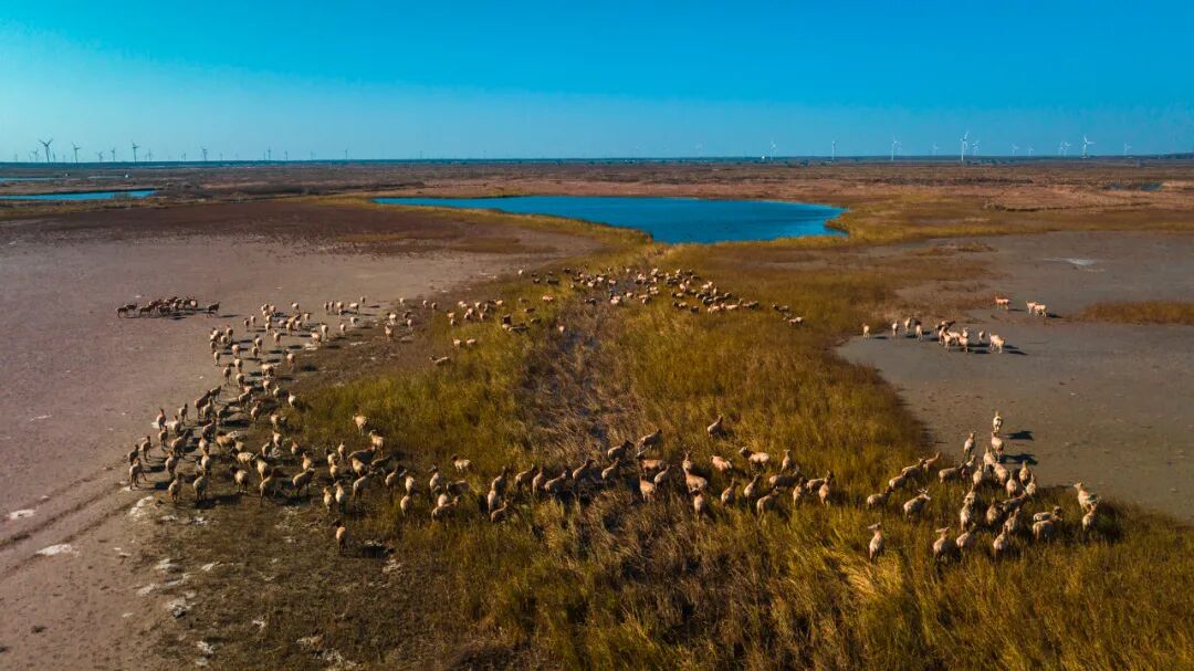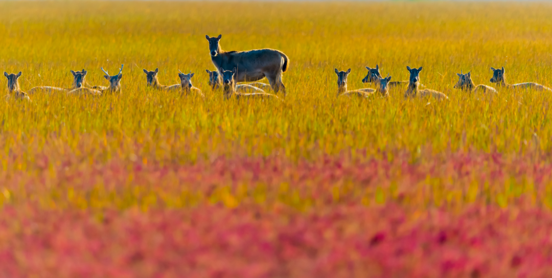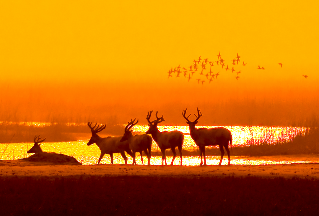 这里,是丹顶鹤、麋鹿、勺嘴鹬“黄海湿地吉祥三宝”安然栖居的乐园。其中,麋鹿——这个曾一度在中国野外绝迹的“四不像”,如今在盐城的守护下上演了物种回归的奇迹,种群数量突破8000头!当夕阳将金晖洒满湿地,鹿群悠然觅食,雄性麋鹿高耸的鹿角在晚霞中刻下剪影,成为这片土地最动人的标志。