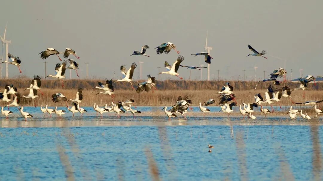 这里总是充满了喧嚣的生命力:针尾鸭划过粼粼波光,绿头鸭成群嬉戏,白腰杓鹬用长喙精准探寻美味。当巨大的海潮如千军万马般涌来,觅食的鸟儿便会轰然飞起,如漫天云霞遮天蔽日,纷纷飞向被称为“720高地”的生命通道——这串简单数字背后,是全球生物多样性保护的中国智慧。