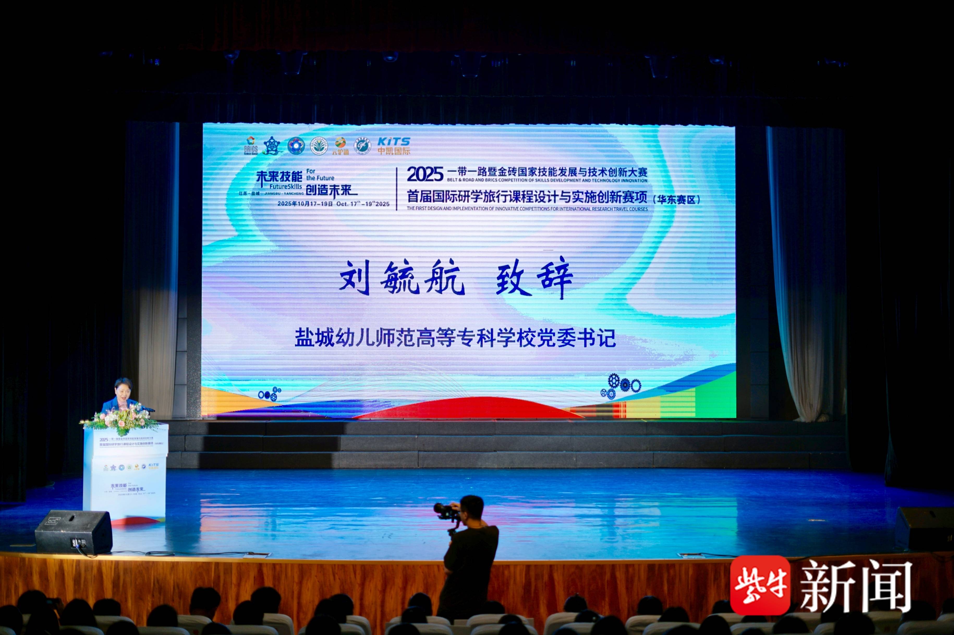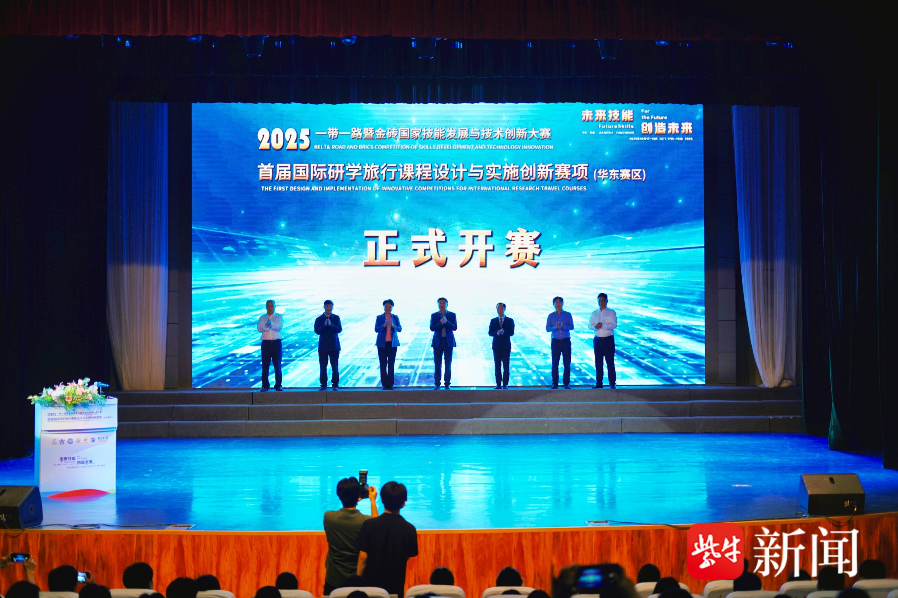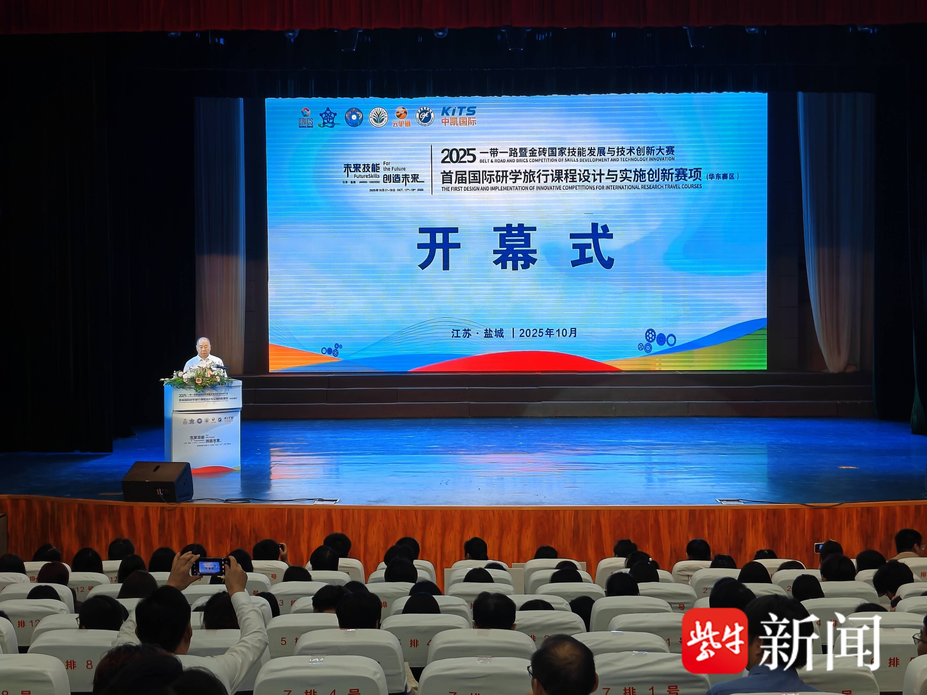 10月17日下午,盐城幼儿师范高等专科学校鲁艺剧场内气氛热烈,2025年“一带一路”暨金砖国家技能发展与技术创新大赛首届国际研学旅行课程设计与实施创新赛项(华东赛区)开幕式在此盛大举行。