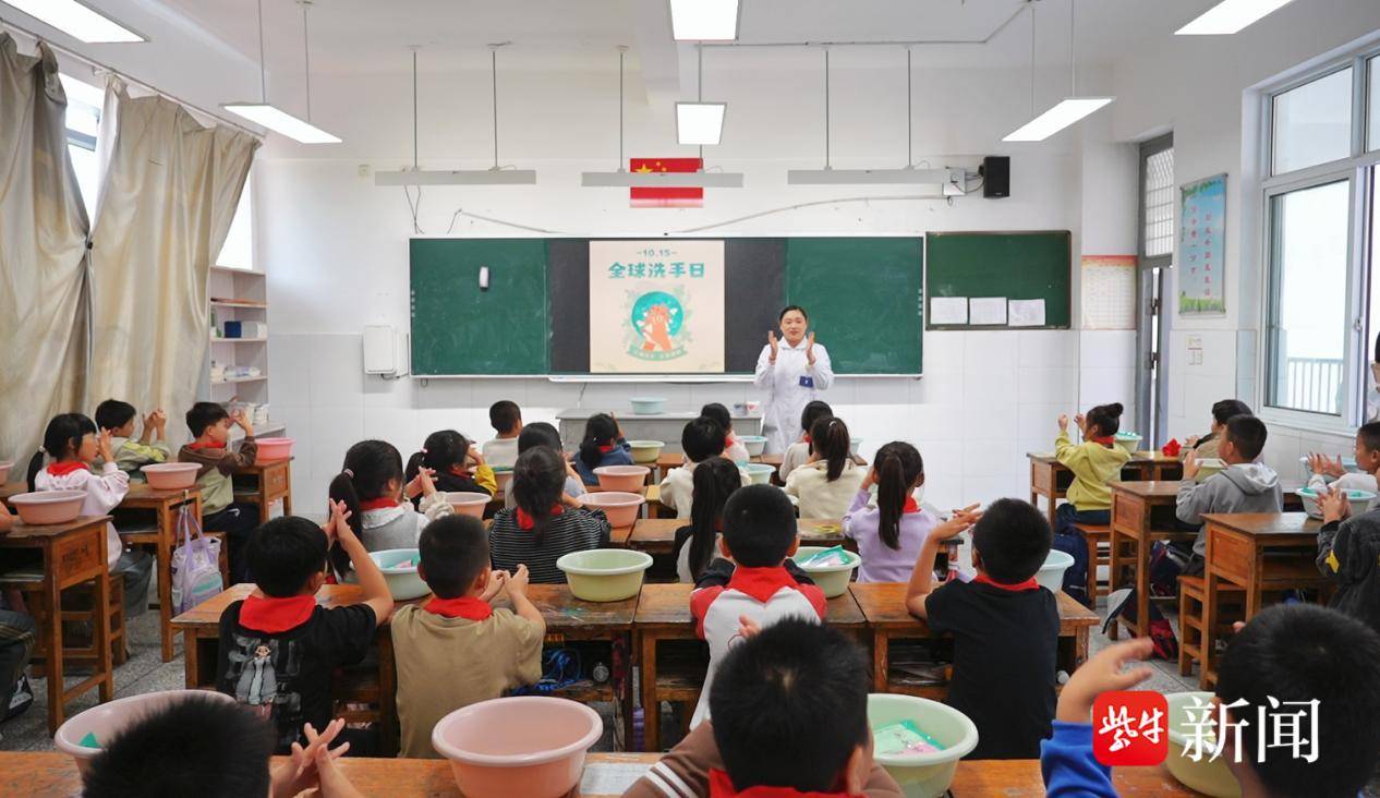 10月15日“全球洗手日”来临之际,为助力学生养成规范洗手的卫生习惯,切实减少肠道与呼吸道传染病的传播几率,连云港市海州区郁洲社区卫生服务中心的医护人员走进连云港市大村中心小学,开展了主题为“健康的双手,从小做起”的健康宣传活动。