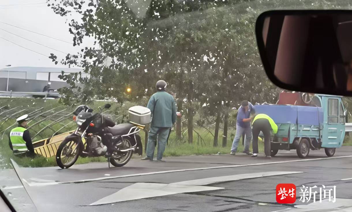 时间回到 10 月 15 日,205国道上大雨纷飞,路面湿滑难行。六中队民警谢永华带领辅警巡逻时,突然发现一辆三轮车不慎侧翻进路边沟渠,车主焦急万分。没有丝毫犹豫,他们立刻停车冲上前,任凭雨水打湿警服,齐心协力将侧翻的三轮车稳稳抬出沟渠,小心移至安全区域。这一幕刚好被开车路过的网友拍了下来。