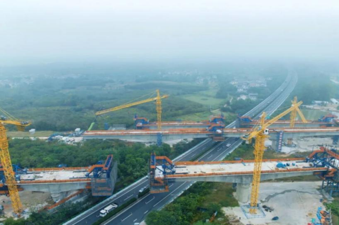 宁淮城际铁路左线六合特大桥跨205国道连续梁合龙