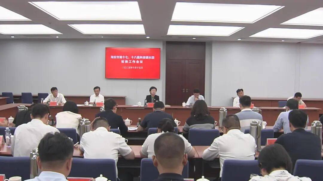 10月15日,海安市召开第十七、十八批科技镇长团轮换工作会议。海安市委副书记、市长赵男男参加会议并讲话。
