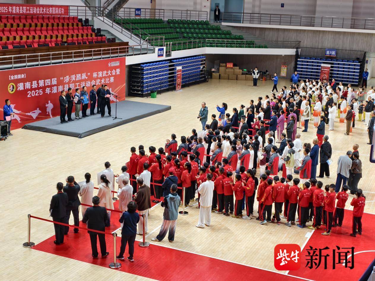 10月18日,由灌南县总工会、县文化体育和广电旅游局联合主办的灌南县第四届“汤沟国藏”杯演武大会暨2025年灌南县职工运动会在县体育馆隆重举行,来自全县22支武术代表队同场竞技,共展武术风采。