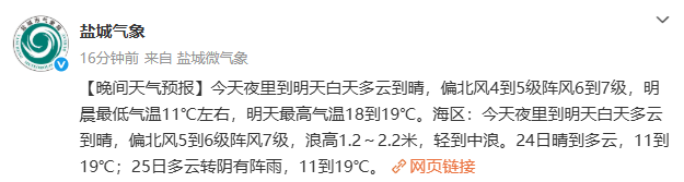 来源 | 中国天气、江苏气象、盐城气象、盐城发布综合