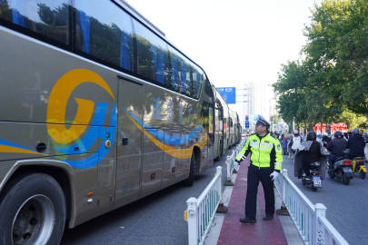 10月23日,江苏省淮安市公安局交警支队一大队民警为保障学生秋游出行安全,提前部署、现场指挥。全程维护交通秩序,引导学生有序乘车。
