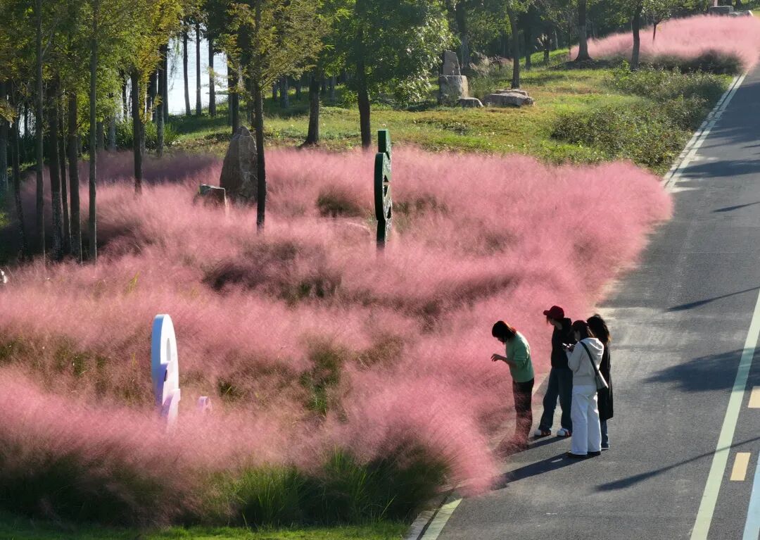 10月22日天气晴朗,蟒蛇河畔秋意正浓,两岸逐渐变黄的树叶、如云絮般铺在河岸的粉黛,在阳光下宛若一幅五彩斑斓的油画。蟒蛇河起始端为大纵湖,贯穿里下河腹部洼地,河道长近40公里,沿途田园风光、传统村落相互交融,成为游客休闲的好去处。