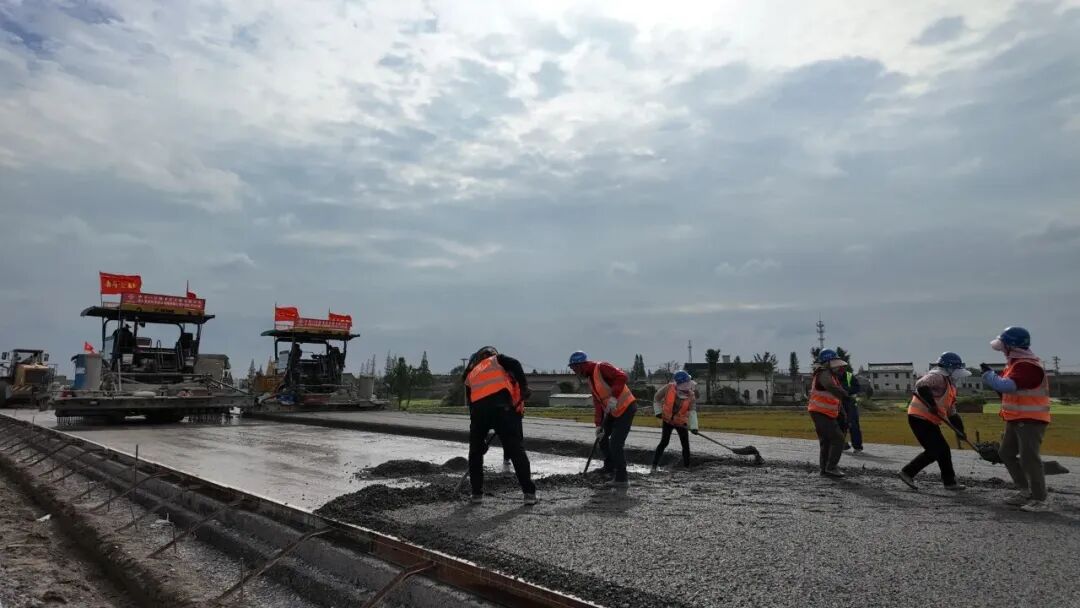 连日来,东兴高速东台段建设现场一片繁忙。摊铺机、压路机有序作业,施工人员紧抓晴好天气,全力推进水稳层摊铺施工。据悉,该项目目前正以每日约1.5公里的速度向前推进,预计11月中旬完成全线水稳摊铺,为明年实现通车目标奠定坚实基础。