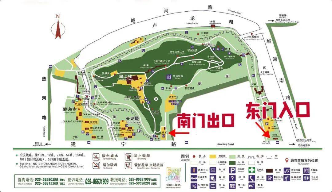1.由于免费开放日当天人流量较大,景区开放东门为入口,线路设置为单向通行,出口为南门建宁路口、南门电梯口、南门电梯登山道口。