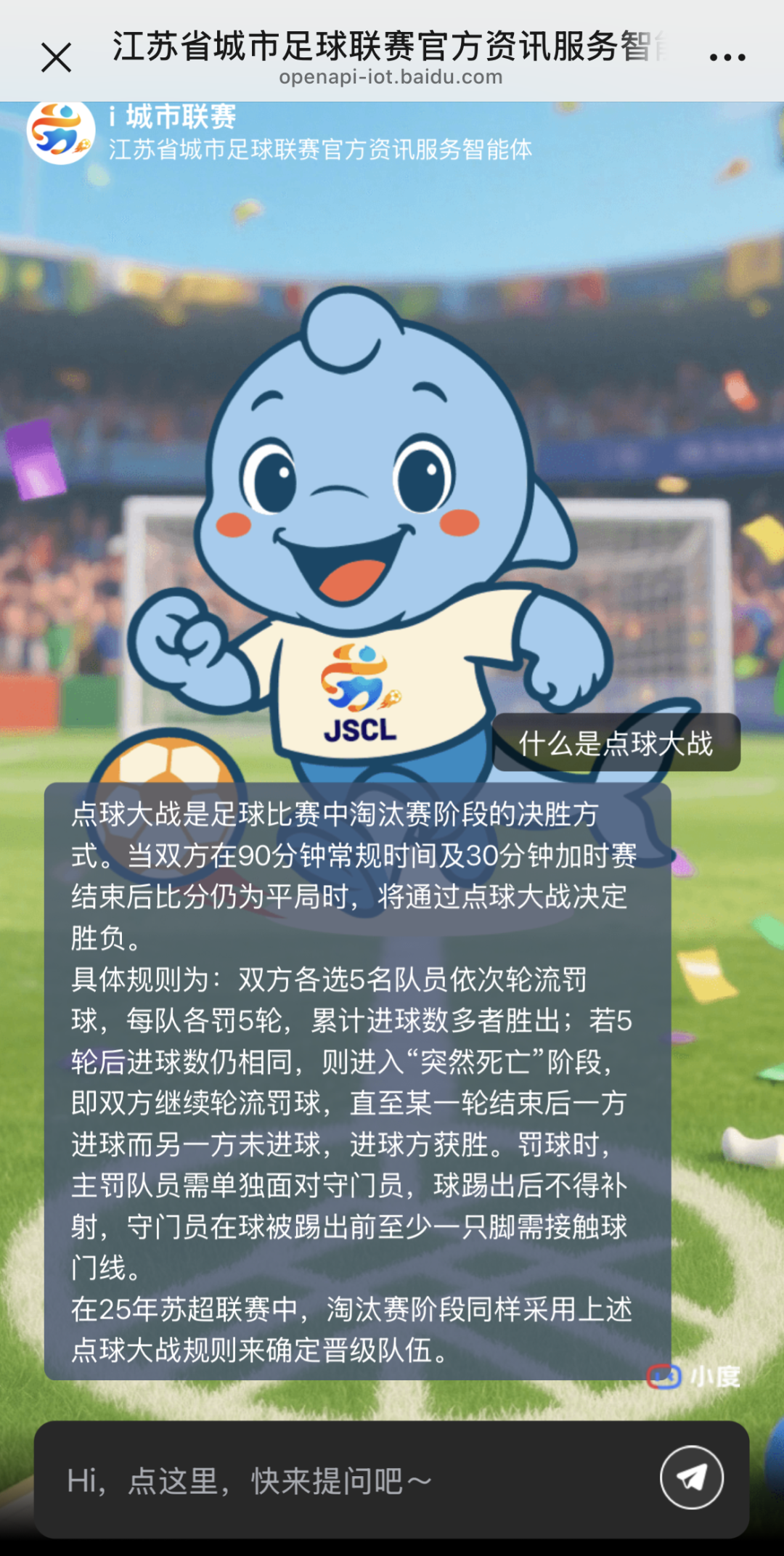 4.点击链接,进入互动界面。在对话框中输入您的问题,点击发送,便可体验AI带来的联赛全新互动方式!