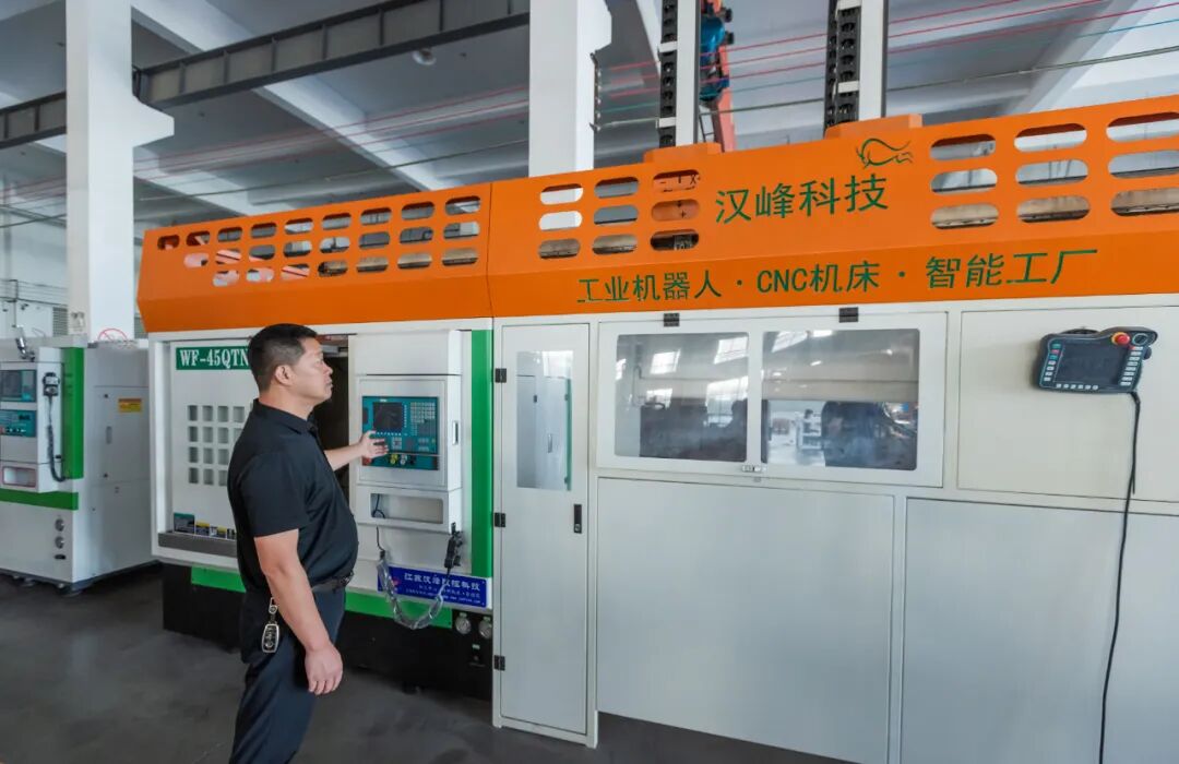 “汉峰为我们定制的HGATV-45L盘类部件自动一体机,集成铸造件车正面+外圆、车反面+内孔、钻孔+倒角全流程,传统工艺得靠3台机床流水线加工。”江苏龙腾特钢集团设备采购部相关负责人介绍,目前已采购200多台套汉峰智能设备,企业实现从毛坯入线到成品包装入库的全流程高效运转,成功获评“江苏省先进级智能工厂”。