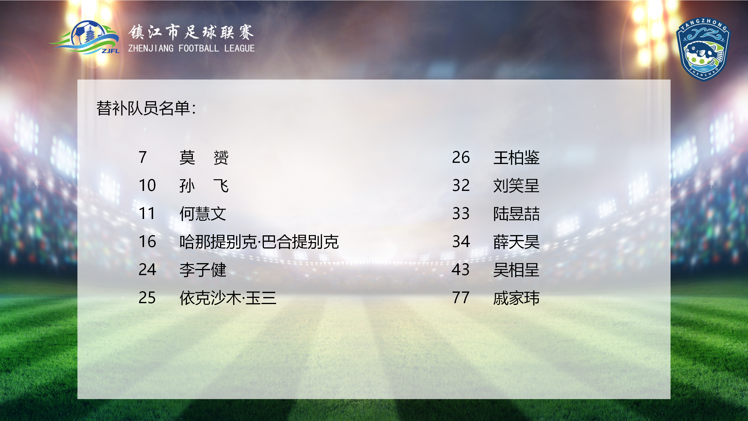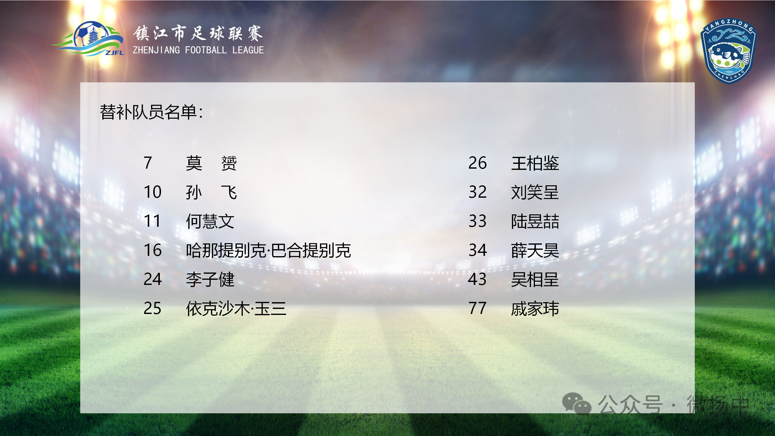 #镇江市足球联赛 扬中队揭幕战十一人战队名单公布!预祝球员们超水平发挥,赛出成绩、赛出风格!加油!