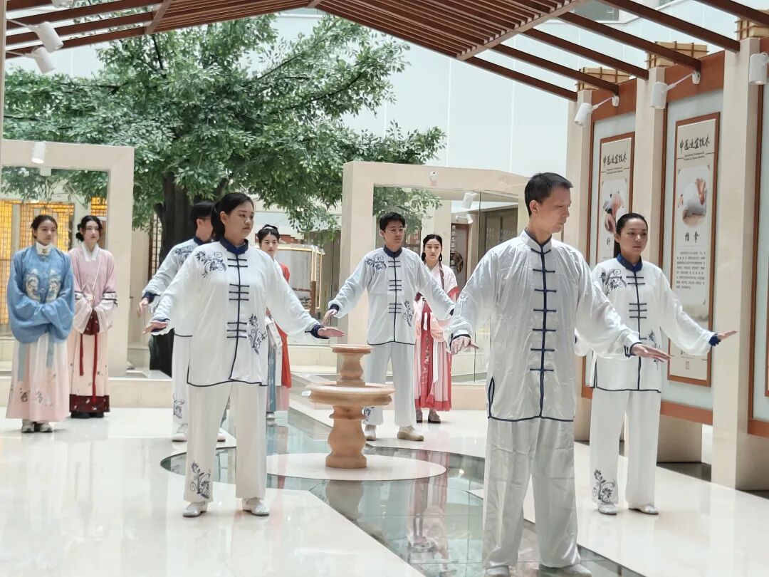 伴随悠扬典雅的古筝声,动静相宜的养生功法开始了。医护人员带领市民共练八段锦,动作柔和连绵、滑利流畅。