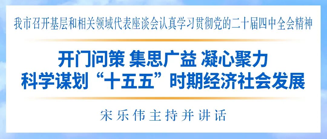10月24日,徐州市委书记宋乐伟主持召开基层和相关领域代表座谈会,认真学习贯彻党的二十届四中全会精神,深入落实习近平总书记关于做好“十五五”规划编制工作的重要讲话重要指示精神,就进一步谋划好徐州“十五五”发展、高质量做好规划编制工作听取意见建议。徐州市领导刘伟、王先正、吴卫东、王浩出席座谈会。