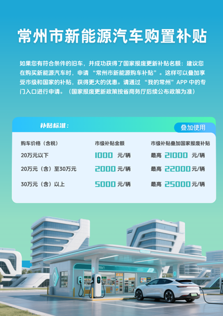 有旧车,换新能源?“叠加补贴” 直接省出 “小金库”。如果您有符合条件的旧车且成功拿到国家报废更新补贴名额,在常州买新能源汽车可就 “赚麻了”!“市补+国补”双重优惠叠加,最高能省25000元/辆。