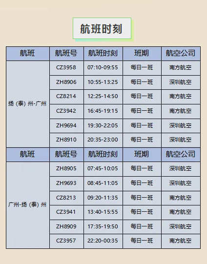 早中晚全时段覆盖,每2-3小时一班,扬泰机场广州航线升级“空中快线”