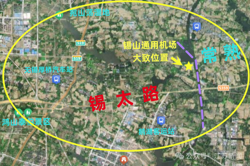 今年年初,在锡山区国土空间总体规划(2021—2035年)综合交通规划图中,位于鹅湖镇的锡山通用机场首次被曝光。