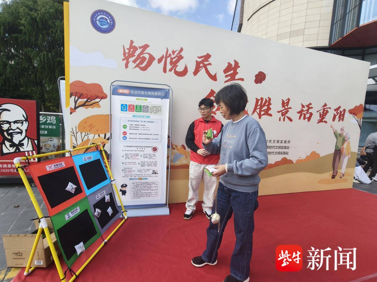 “环保行动站”的垃圾分类挑战环节,以趣味形式传递绿色理念,成为活动的“人气打卡点”。分类投篮游戏区,不同颜色的垃圾桶模型对应不同种类的垃圾,参与者需将写有垃圾名称的沙包投至正确的“桶”中,投中数量达标即可获得奖励,在轻松的氛围中巩固了分类知识。完成挑战的居民纷纷领取洗手液、垃圾袋作为奖励,大家纷纷表示:“这种游戏比单纯听讲有意思多了,不仅玩得开心,还记住了不少分类小技巧,以后扔垃圾肯定更规范。”