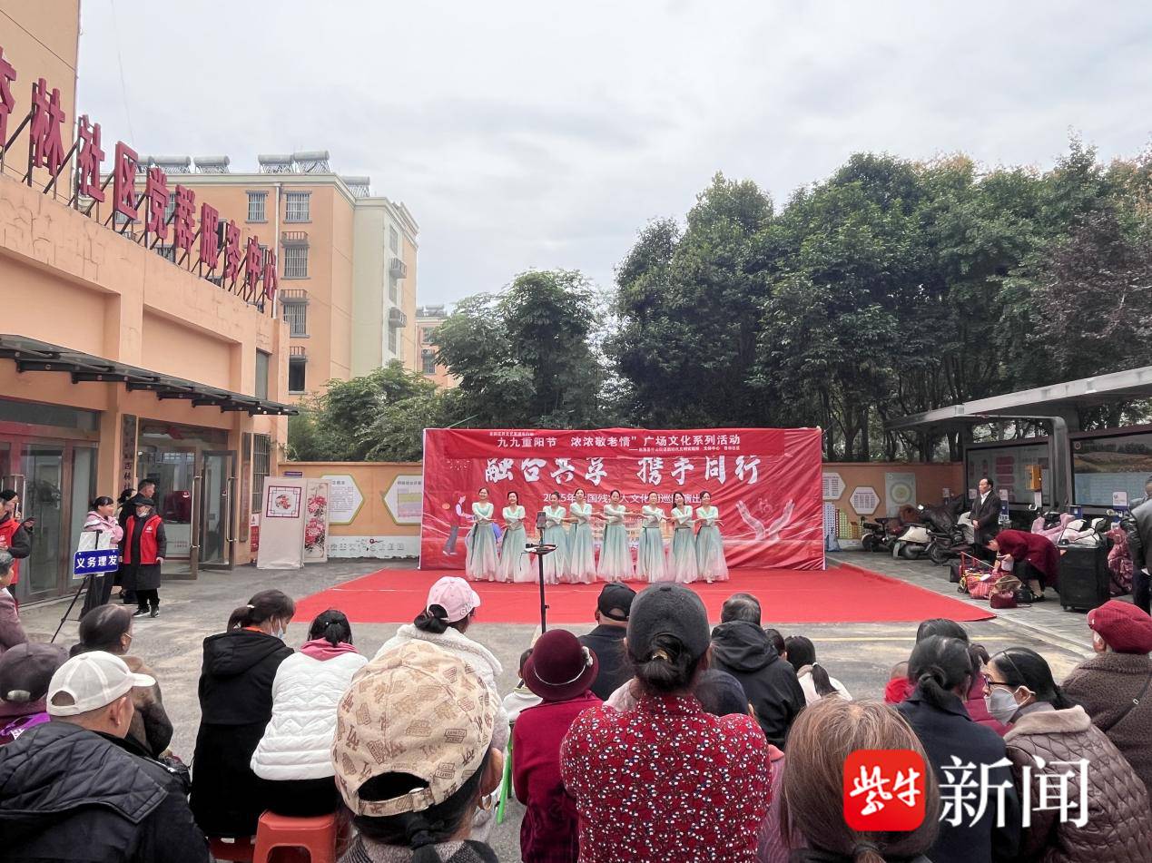 与此同时,辖区广场上欢声笑语不断。“茉莉花开”文艺直通车驶入广场,一系列传统歌舞、经典戏曲、小品等节目,既保留了传统文化的精髓,又注入了时代新意,为辖区居民献上了一场重阳礼赞,赢得了现场观众的阵阵掌声。