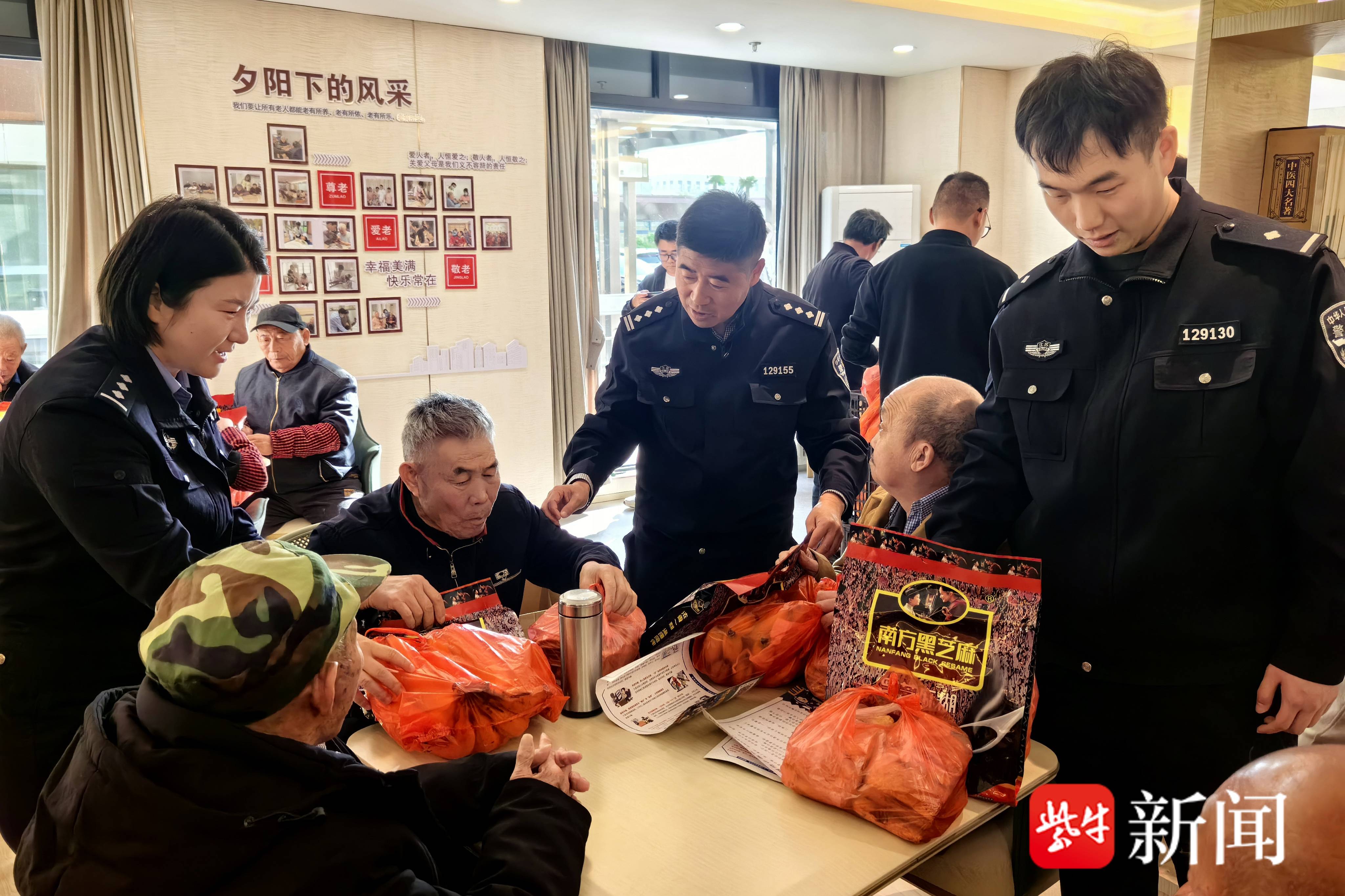在姜堰区申丞溱湖护理院,民警为老人送去水果、牛奶等慰问品以及节日的祝福,详细了解他们的身体状况和生活情况,叮嘱他们注意天气变化。亲切的问候让老人们打开了话匣子,与民警分享生活中的点滴,脸上洋溢着久违的笑容。