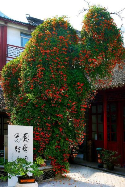 古藤园里,200余年紫藤爬满黛瓦墙头,枝干虬曲却藏浪漫。开花时,淡紫花穗垂落,长可及腰、短亦半尺,风拂巷间满是清甜,石板路被花影染紫,宛如踏入幻境。