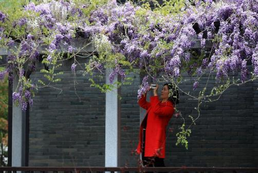 清晏园紫藤长廊尽头,那百余年紫藤是“春日白月光”。老藤盘绕廊架,淡紫粉白花穗垂落如“紫色瀑布”,与石板路青苔相映。廊下花香清甜,风动花摇,似闯入百年梦境。