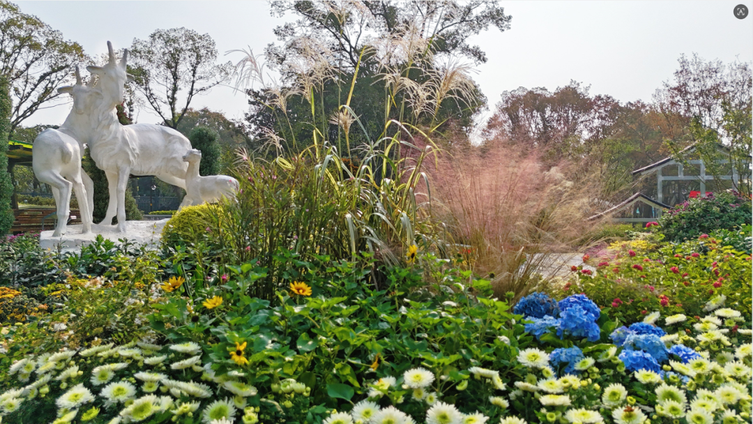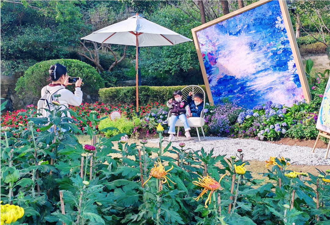 紫琅花谷则以“缤纷菊舞,浪漫紫琅”为主题,用1.2万盆菊花勾勒出十余处创意打卡点。悬崖菊垂落如瀑布,球菊圆润似绣球,树菊挺拔若小乔木,各类造型菊在紫琅花谷的自然景致中舒展身姿。在精品菊展区,“国花皇中” 的雍容、“锡景黑金刚” 的深邃、“霜晴缀粉” 的柔美、“彩溪流霞” 的绚烂,吸引众多游客驻足观赏。“我们不仅要让游客‘看菊’,更要让他们‘浸在菊里’。”创新区管理办公室相关负责人介绍,10月31日至11月2日,紫琅花谷还将增设游园市集,让市民在打卡拍照之余,把秋日浪漫 “揣进生活里”。
