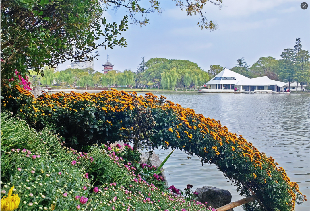 活动期间,南通市风景园林学会第四届通派盆景艺术展同步开展,60余件盆景作品与菊花交相辉映,尽显江南园艺之美;每周末举办的 “菊香濠当时” 市集,更让市民在赏菊之余,能选购手作、品尝美食,感受秋日烟火气。