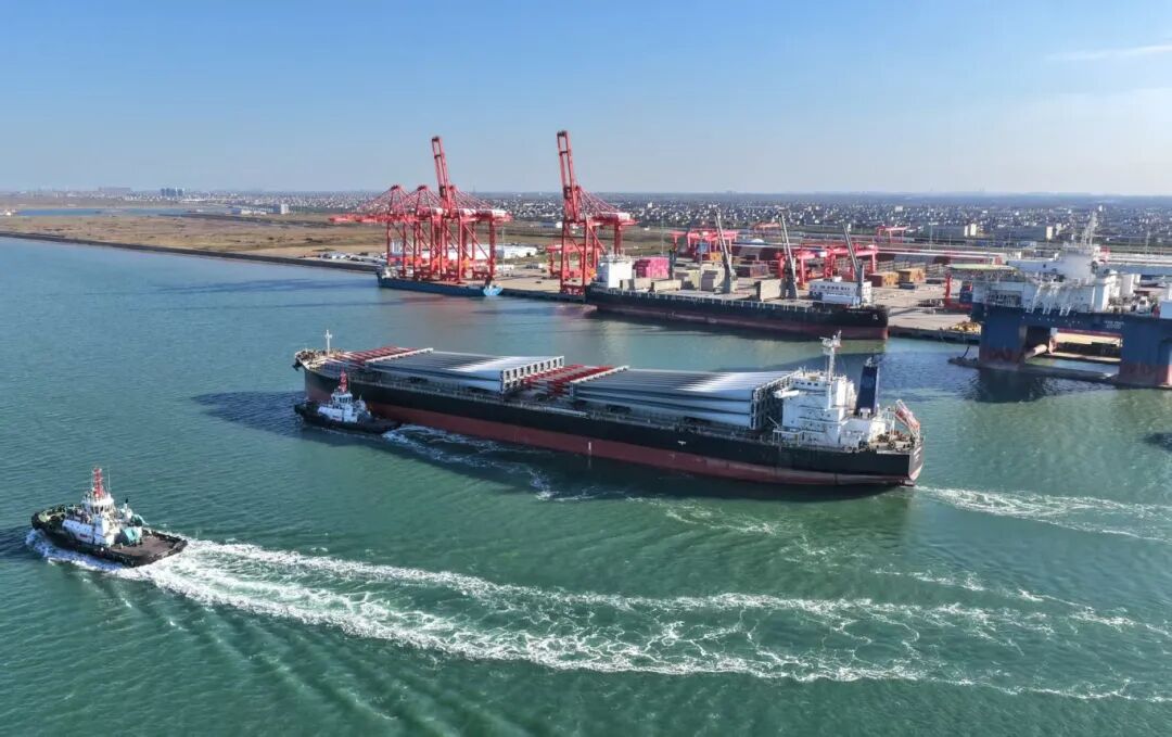 10月29日15时,装载45片风电叶片的丹麦籍货轮“诺德星空轮”(Nord As tralis)从吕四通洋码头启航,驶往新加坡。据悉,本次运输的叶片型号为V162,单片叶片长度达80米,重约40吨,整批货物总重1658吨。