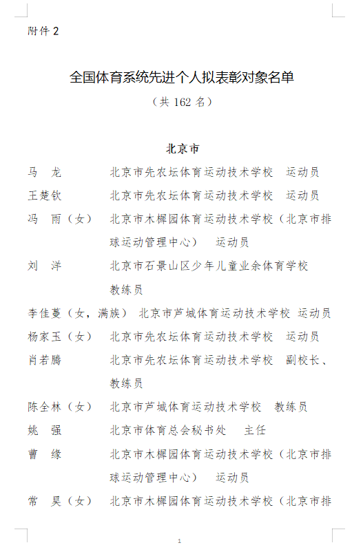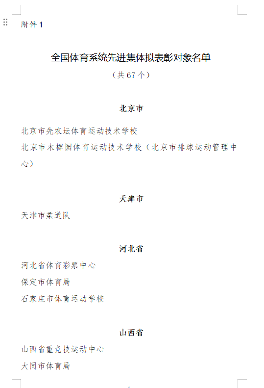 关于全国体育系统先进集体和先进个人拟表彰对象的公示