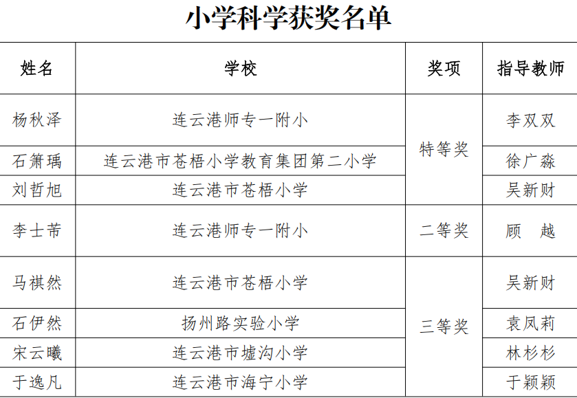 近日,2025年江苏省中小学生实验能力大赛获奖结果正式公布。江苏省连云港市学子不负众望,6名学生荣获省特等奖,1名学生获省一等奖,9名学生获省二等奖,2名学生摘得最佳合作奖与最佳探究奖。其中,江苏省连云港市的省特等奖数量位居全省第二、苏北第一, 1名学生成绩排名位列全省第一。