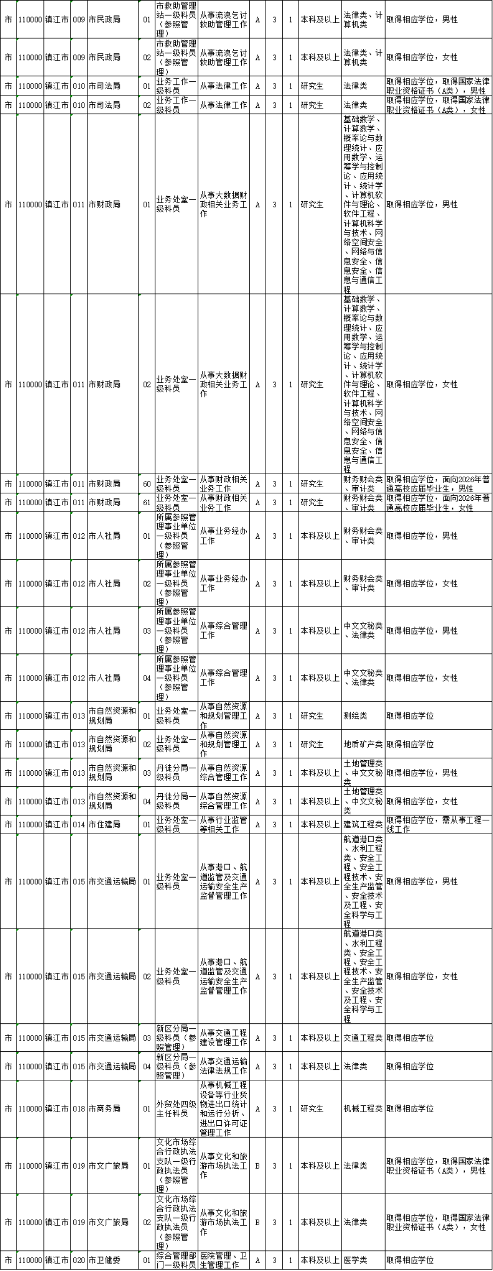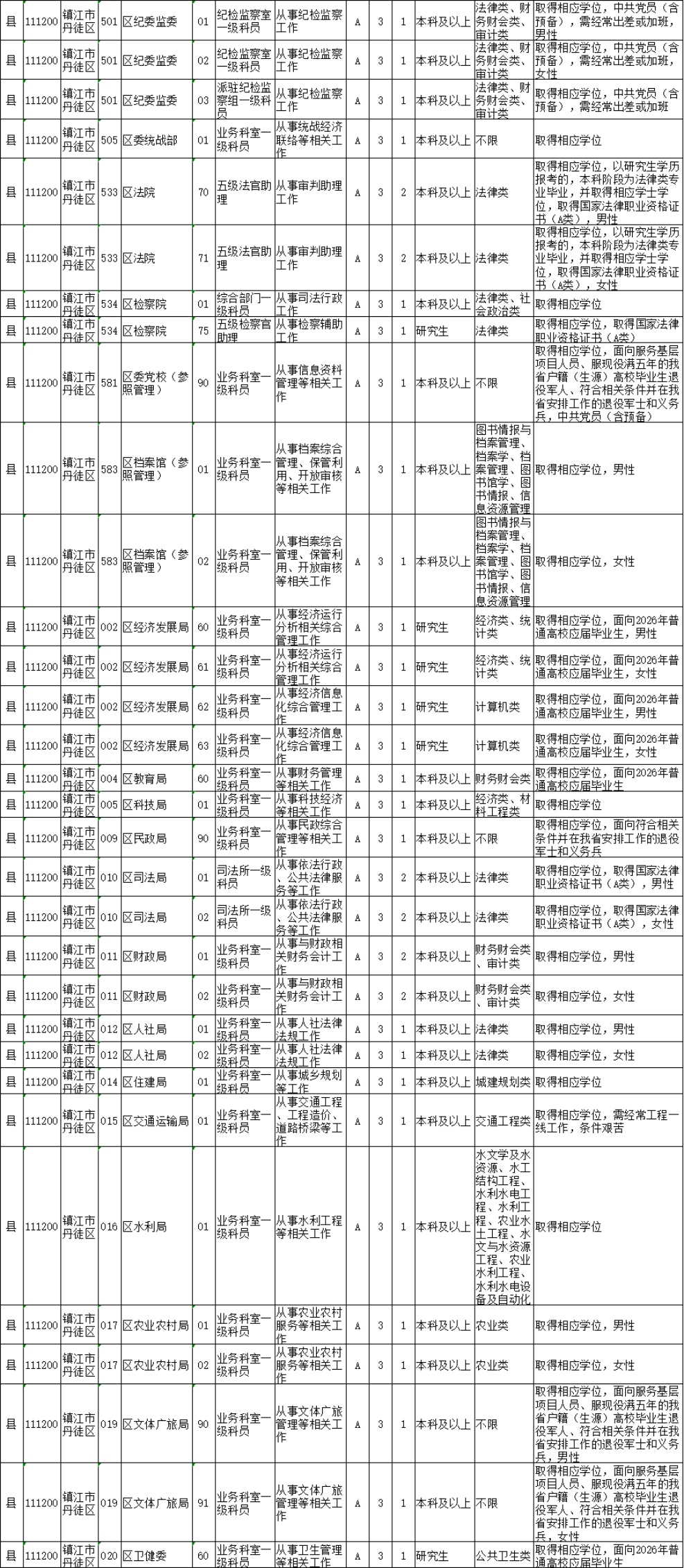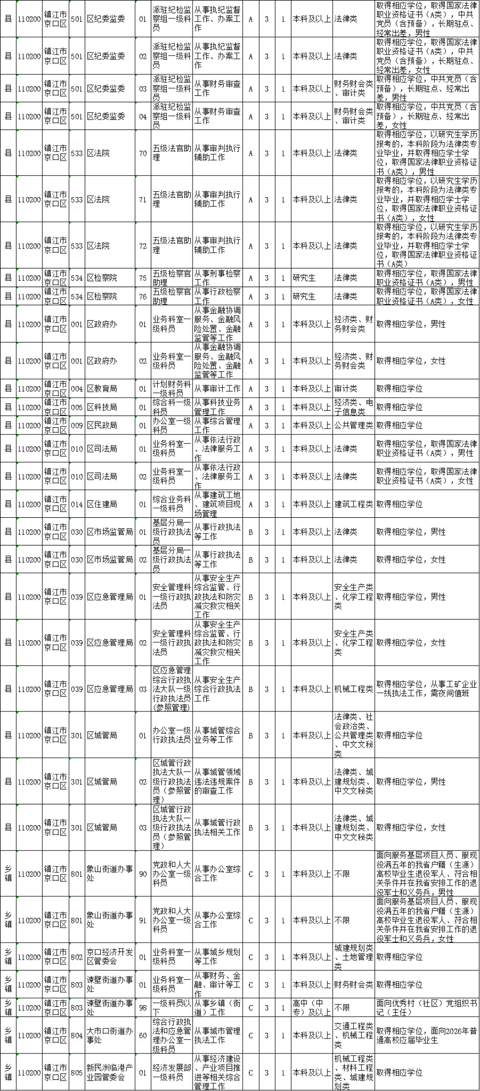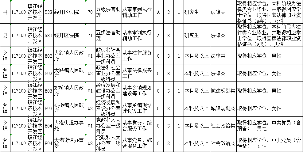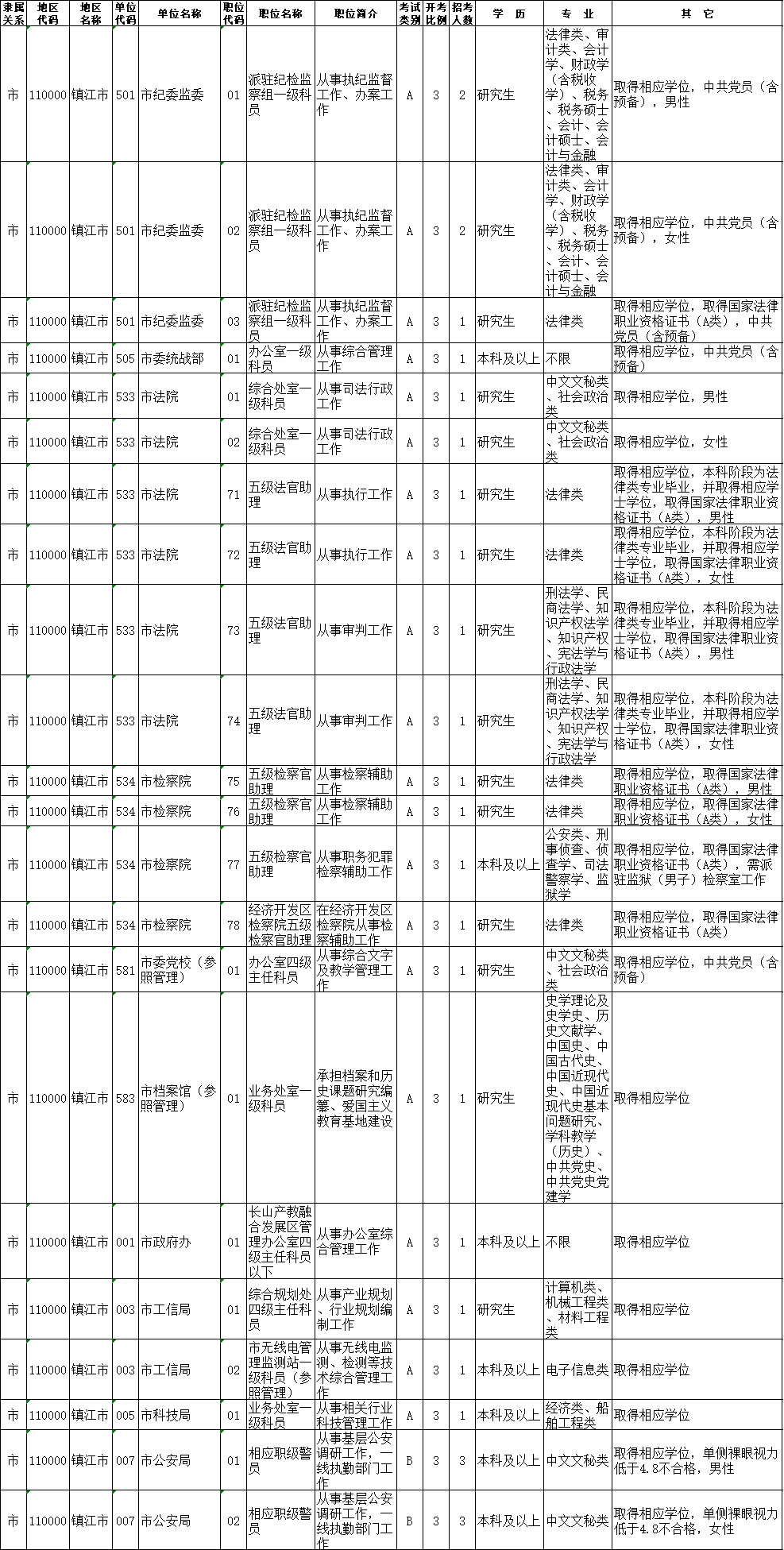 镇江市考录职位如下