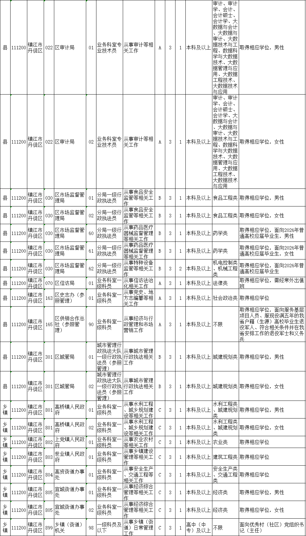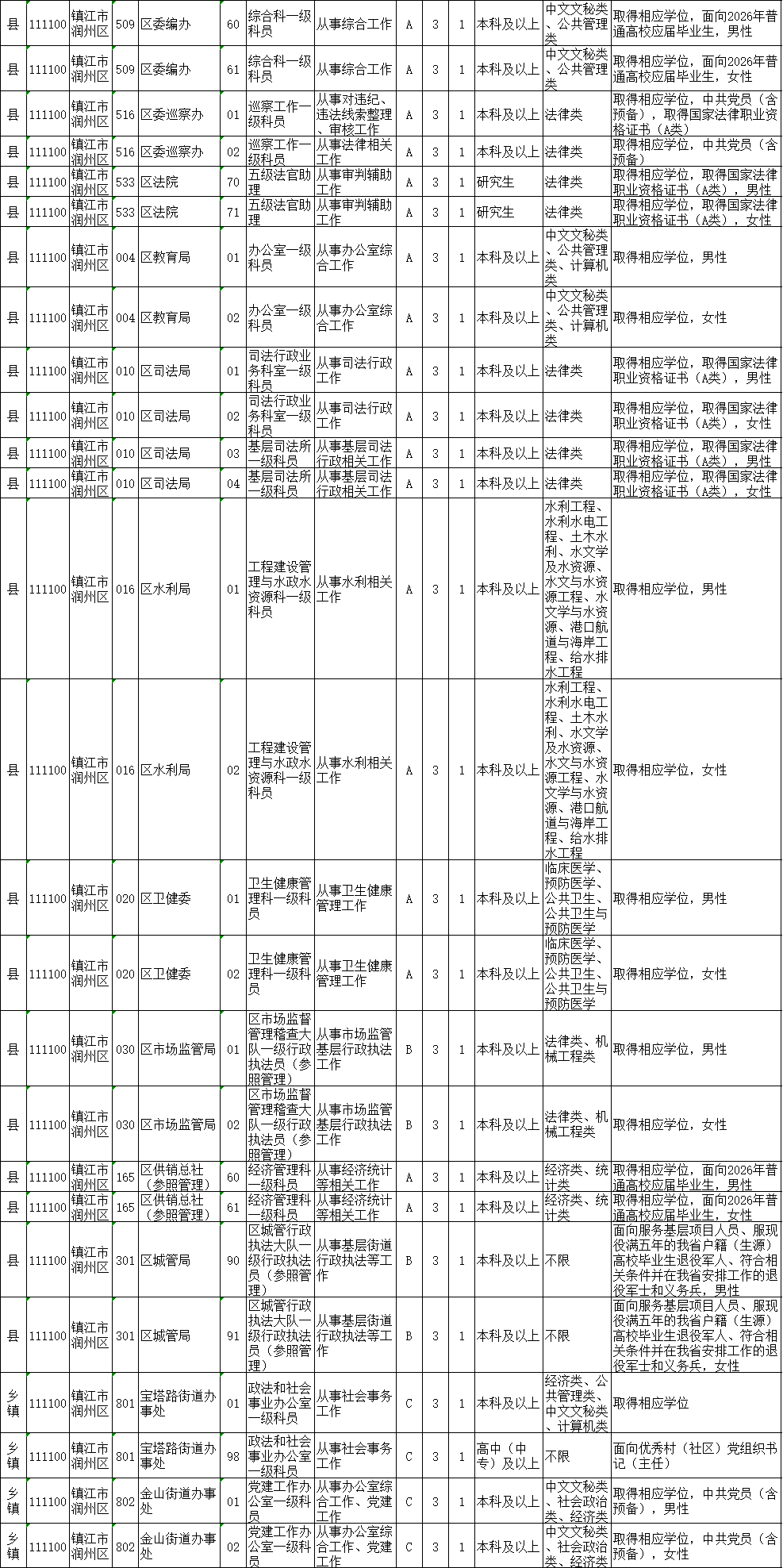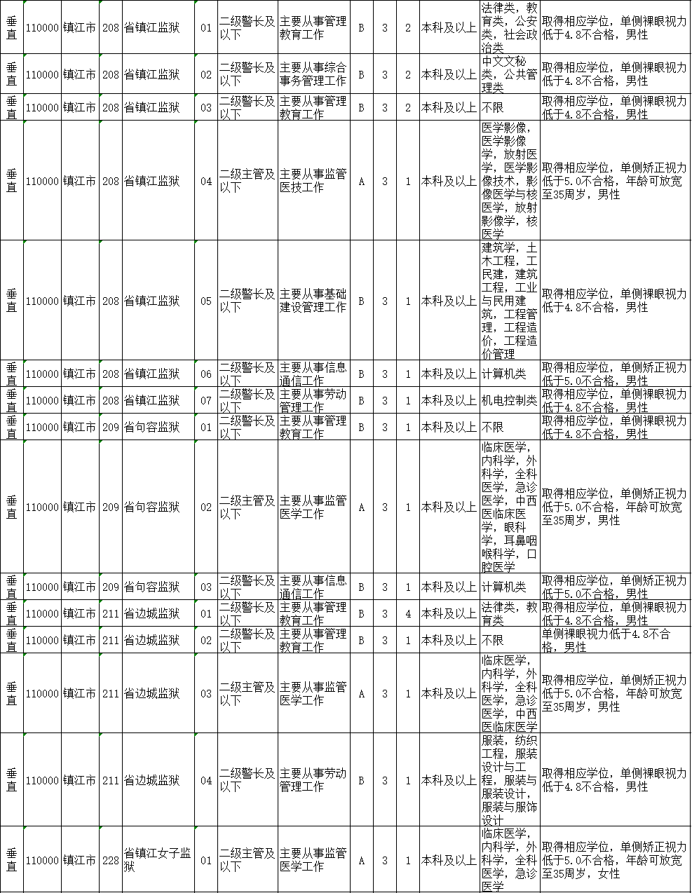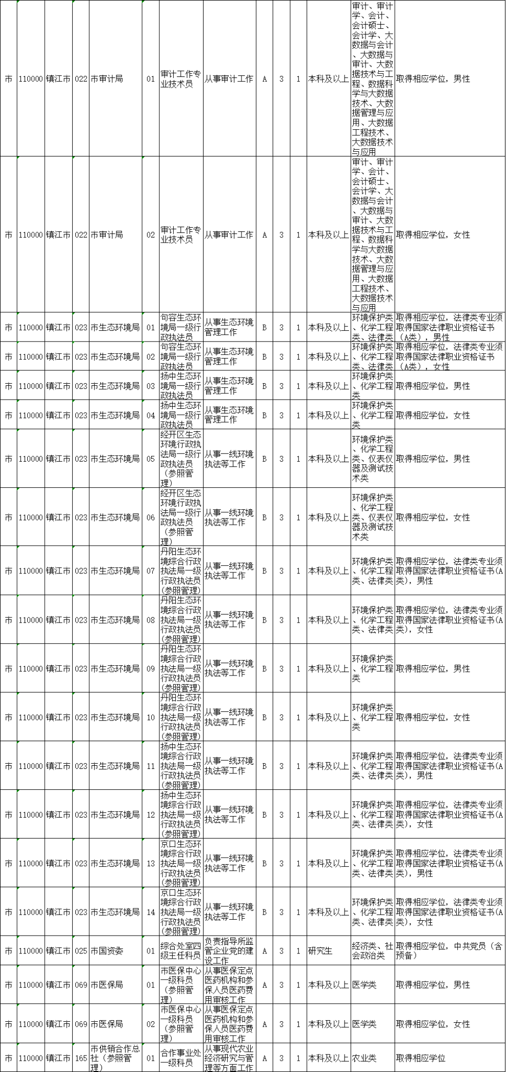 镇江市考录职位如下