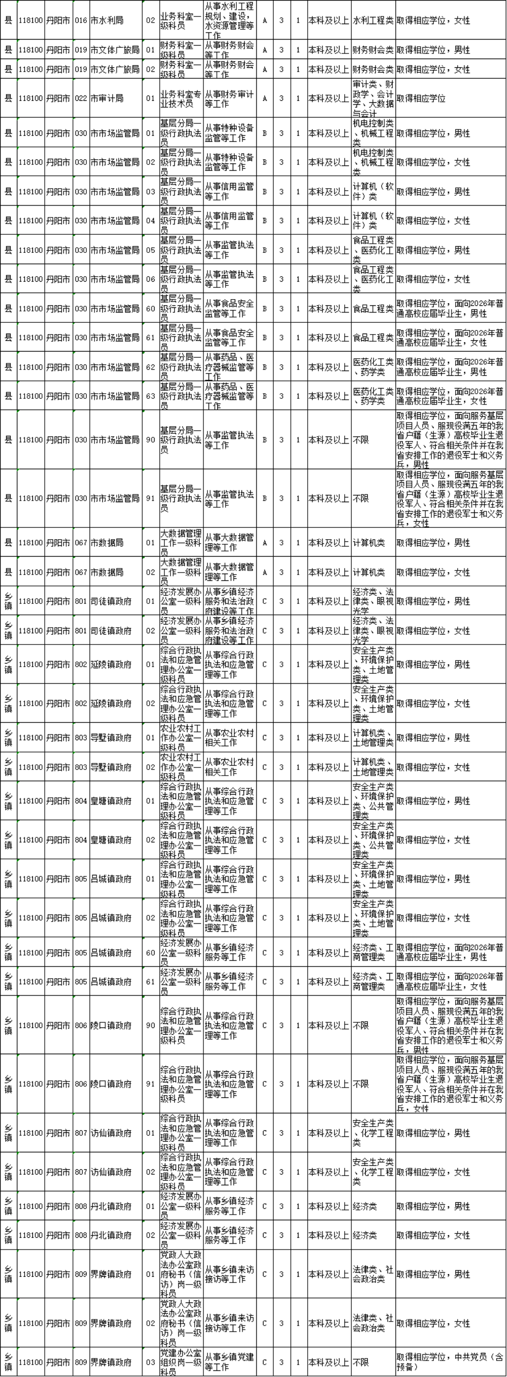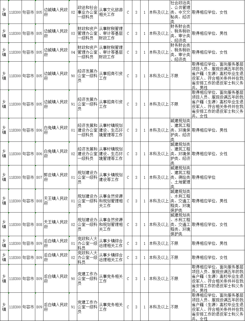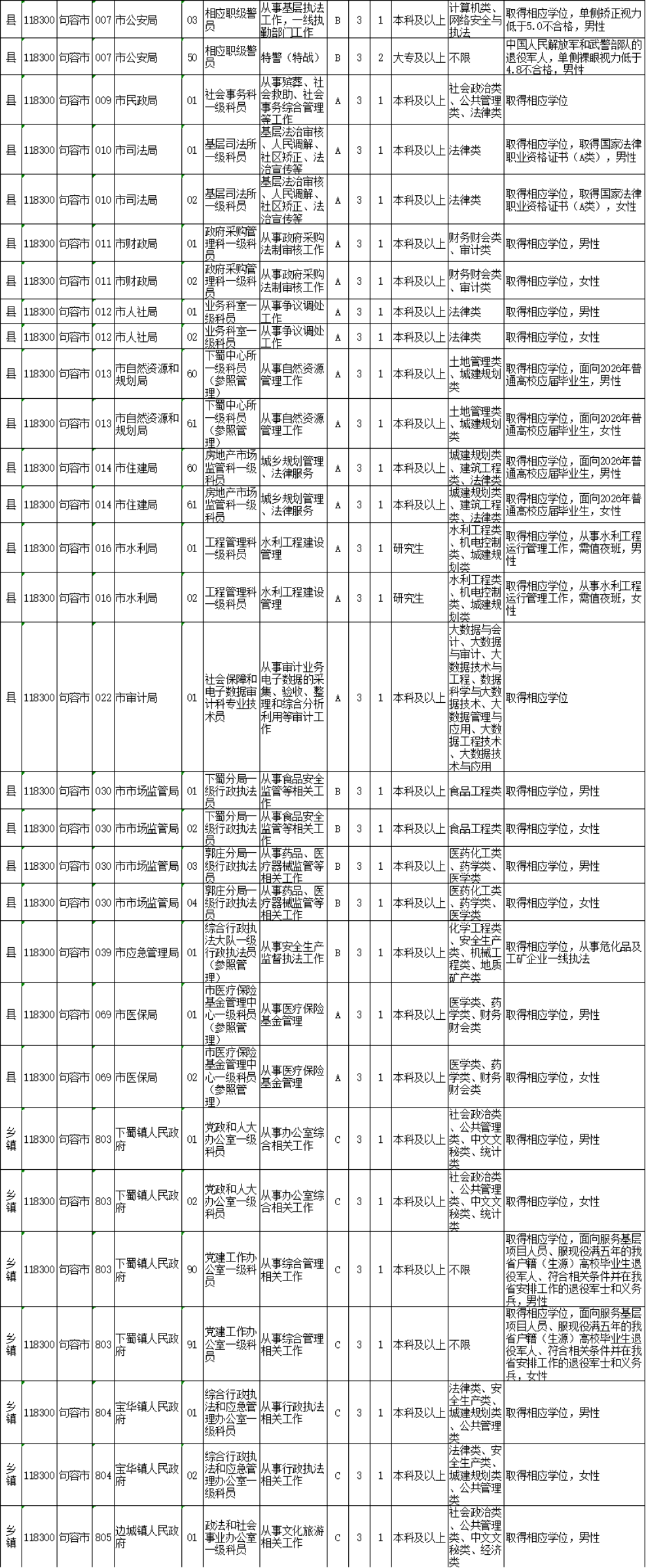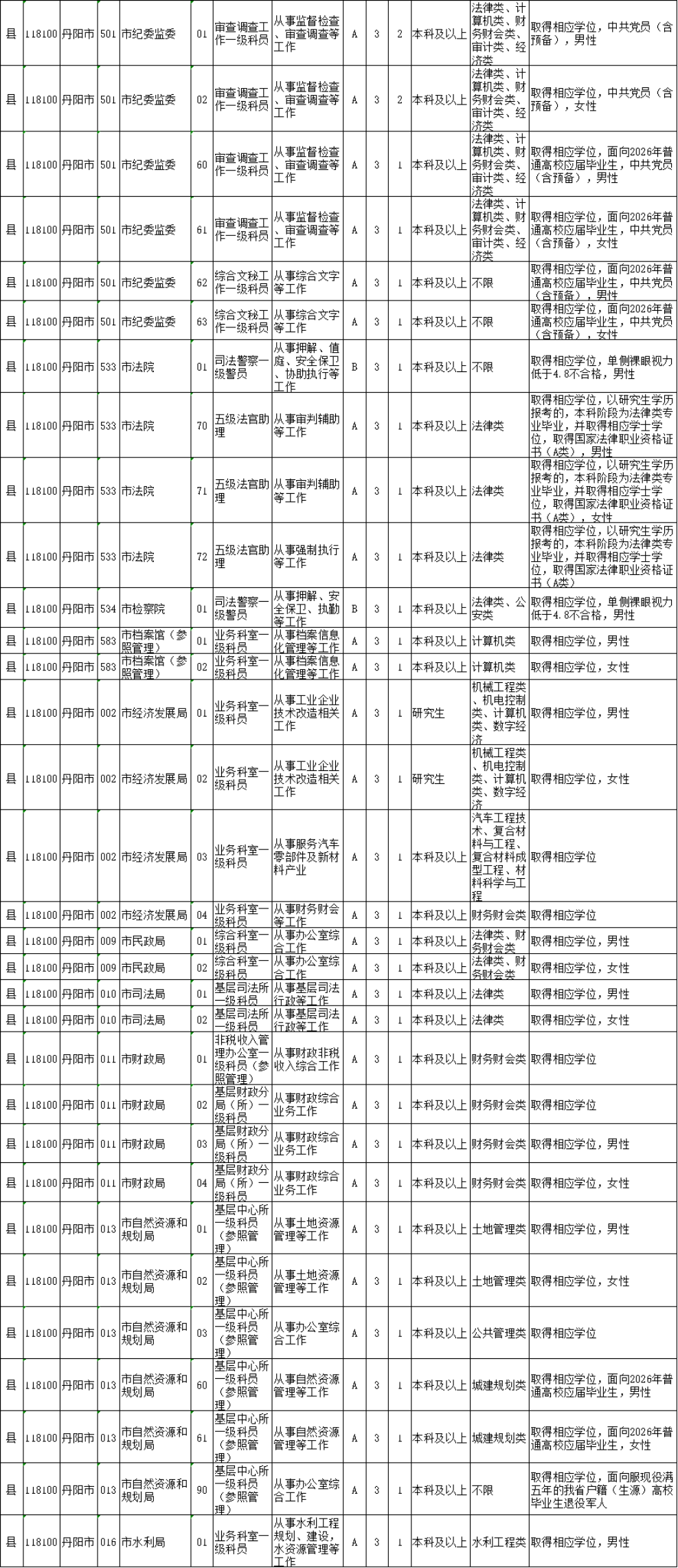 镇江市考录职位如下