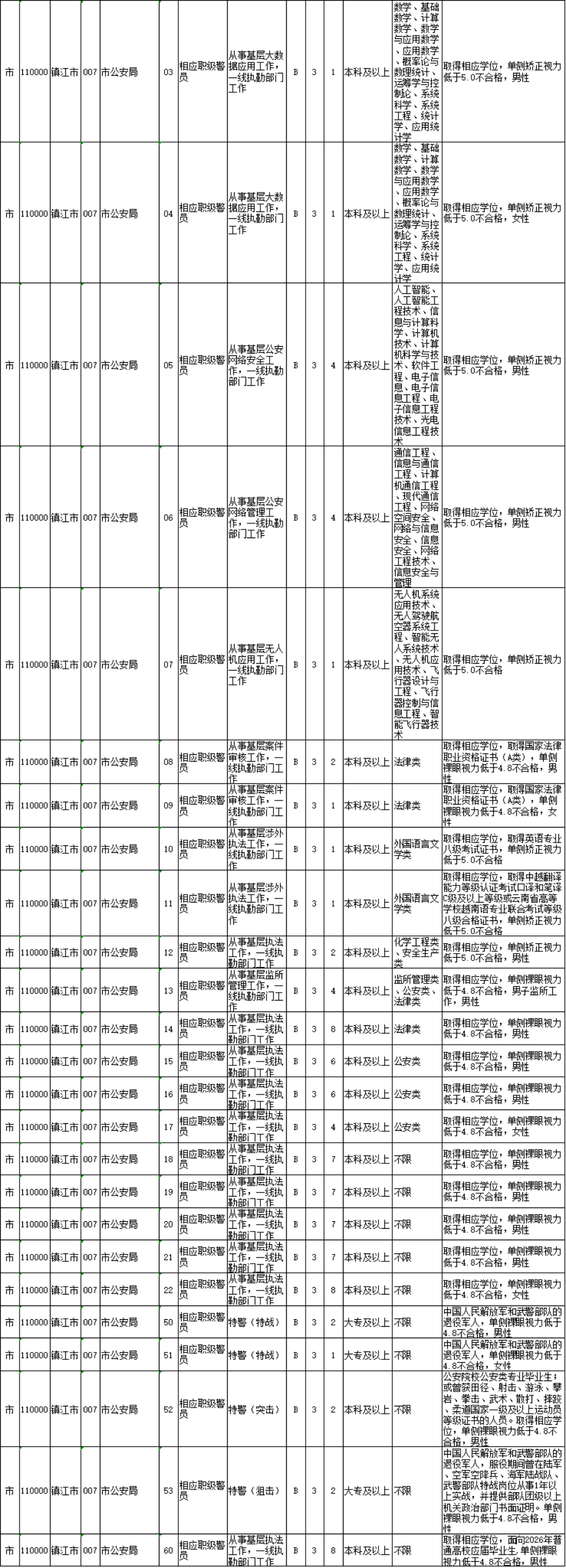 10.专技类特殊职位(职位代码50-59)的报考者还须具备《江苏省2026年度考试录用公安机关公务员(人民警察)简章》规定的相关条件;