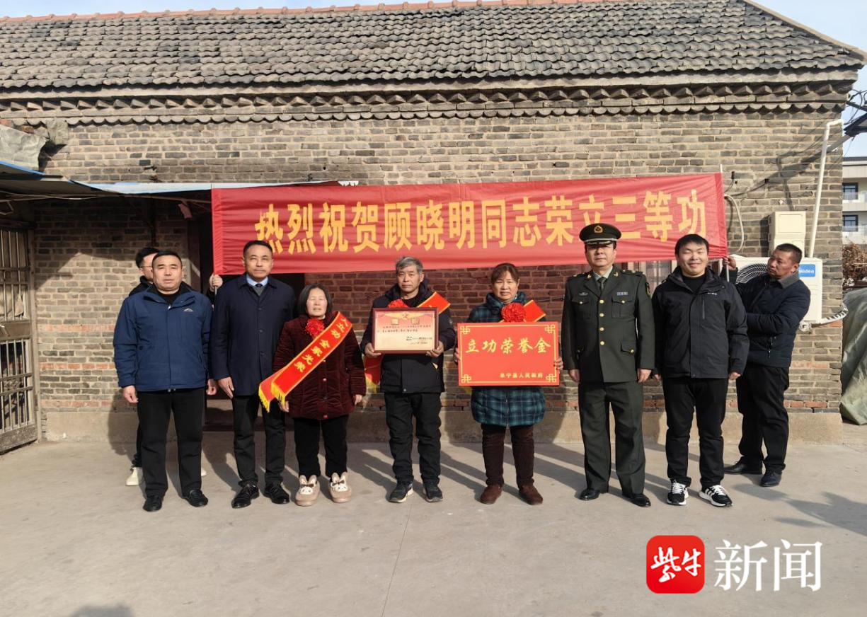 2月9日上午,阜宁县花园街道顾庄社区锣鼓喧天、横幅高悬。由县人民武装部、县退役军人事务局及花园街道武装部、退役军人服务站共同组成的送喜报小组,高举“热烈祝贺顾晓明同志荣立三等功”的醒目横幅,在邻里乡亲的欢声簇拥下,将满载荣誉的立功喜报送至辖区一位现役军人家中。