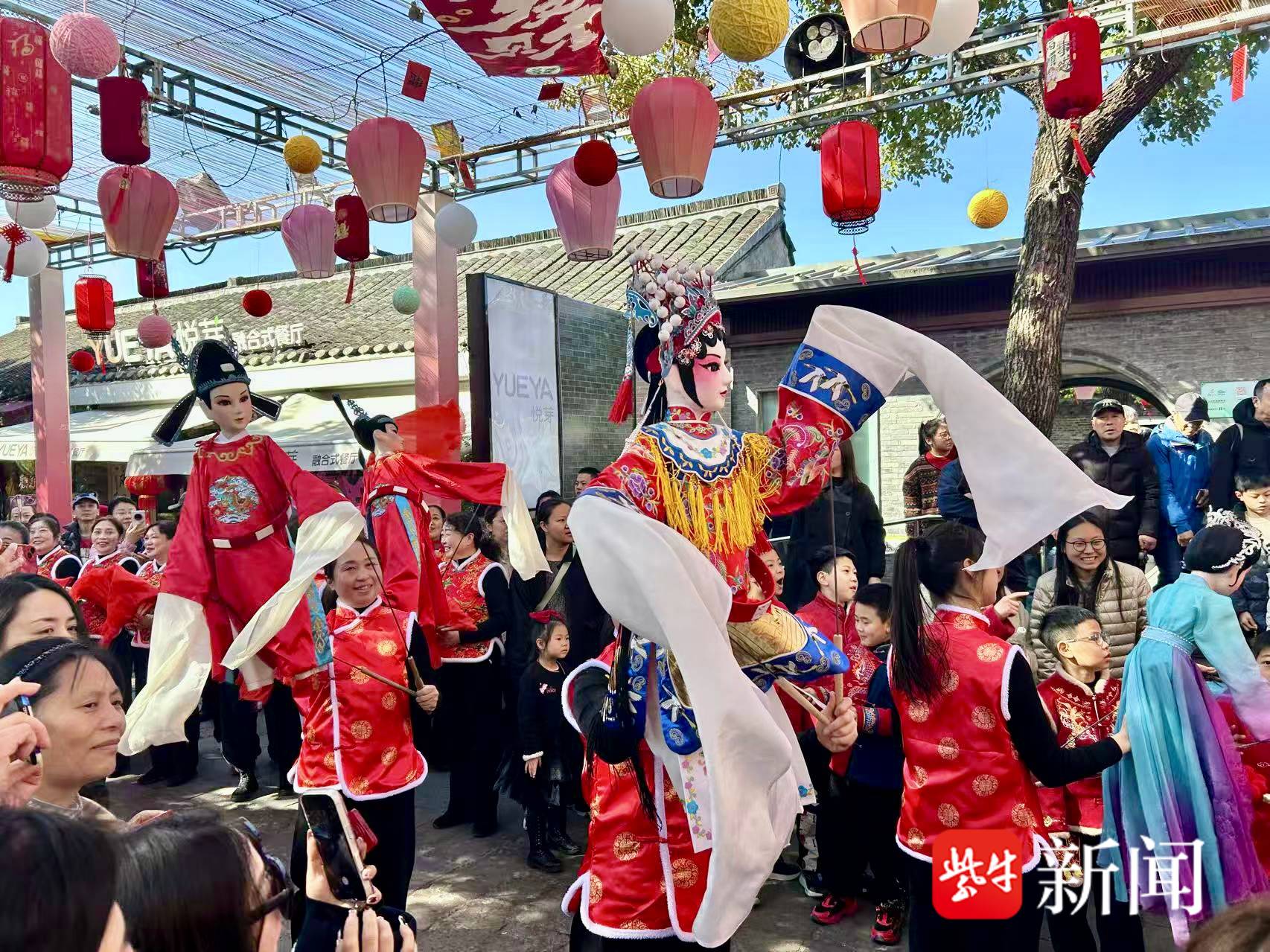 上午十点,伴随着欢快的锣鼓声,踩街队伍浩浩荡荡地从皮市街南入口出发。记者看到,打头阵的是来自扬州市汶河小学的“娃娃兵”,孩子们举着糖葫芦,抱着可爱的玩偶,笑容比阳光还要灿烂。紧随其后的是扬州木偶剧团的特色非遗杖头木偶表演,一个个木偶活灵活现,俏皮逗趣,引得围观的孩子欢呼雀跃。接着,广陵区联盟舞蹈团成员盛装出场,阿姨们神采飞扬,舞姿优美,舞出了新年的精气神;扬州曲艺团团员的快板表演,生动讲述街头巷尾的鲜活故事,引得现场笑声不断;压轴登场的皮市街国风演艺队伍,汉服华裳,衣袂飘飘,仿佛从历史画卷中走来。