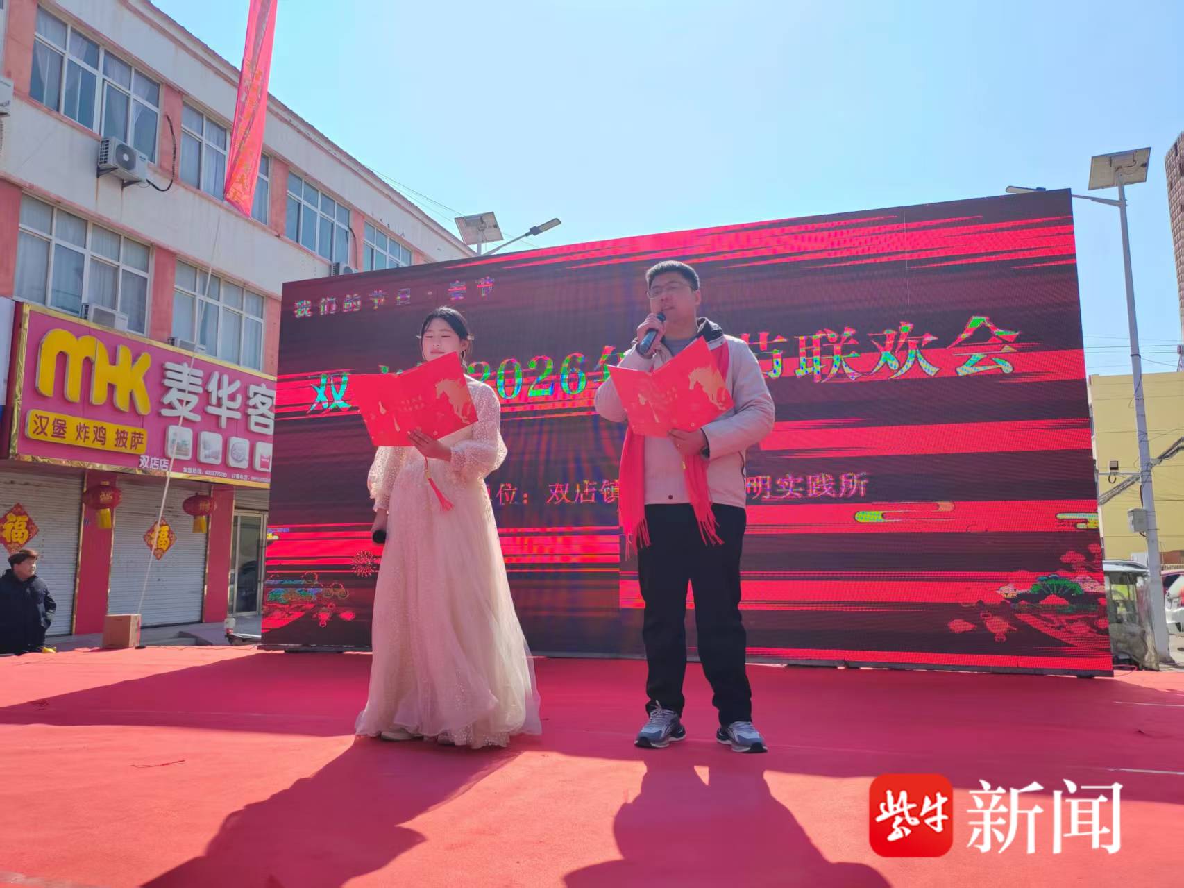 扬子晚报网2月21日(通讯员 宋彦伟 记者 孙锐)欢歌辞旧岁,骏马迎新春。2月17日农历正月初一,由东海县双店镇人民政府主办,东海县双店镇新时代文明实践所、东海县双店镇文化广电体育服务中心承办的茉莉花开文艺直通车“我们的节日·春节2026年新春联欢会”在双店镇党委大门前温情启幕。诸多草根歌手、民间艺神采奕奕走向台前大显身手,用精彩纷呈的文艺表演奉献文化盛宴,携手奋进,逐梦前行。